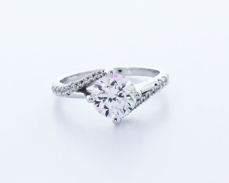 47 Diamond District, Its The Worlds Diamond District For A Reason, #Apieceofnature, Twist-Shank, Basket, Bypass Band, Side-Stone, 4 Prong, Pave, Side Stone Engagement Ring, Engagement Ring, 2 Carat, Round, Ring, 14K White Gold Ring, Round Diamond Ring, Birthday Gift, Christmas Gift, Gifts For Women, Mothers Day Gift, Valentines Gift
