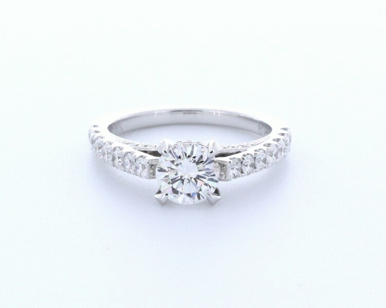 Vintage / Antique, Milgrain, Engraved, Basket, Open Gallery, Diamonds On Basket, Diamonds On The Bridge, Gallery Design, Side-Stone, 4 Prong, Micro Pave, Side Stone Engagement Ring, Engagement Ring, Vintage Style Jewelry, Antique Look Jewelry, 1.75 Carat, Round, Ring, 18K White Gold Ring, Round Diamond Ring , , ,