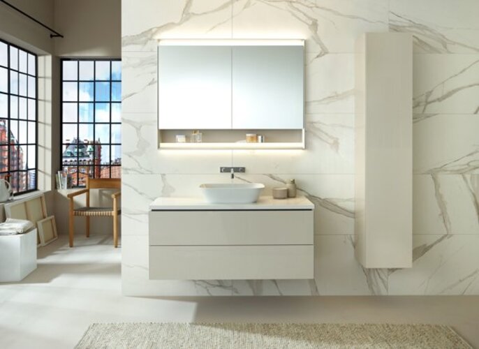 Geberit ONE Plateau de lavabo, décolleté central, pour lavabo à poser forme bol, 105 x 3 x 47 cm, 505.274.00., couleur : blanc
