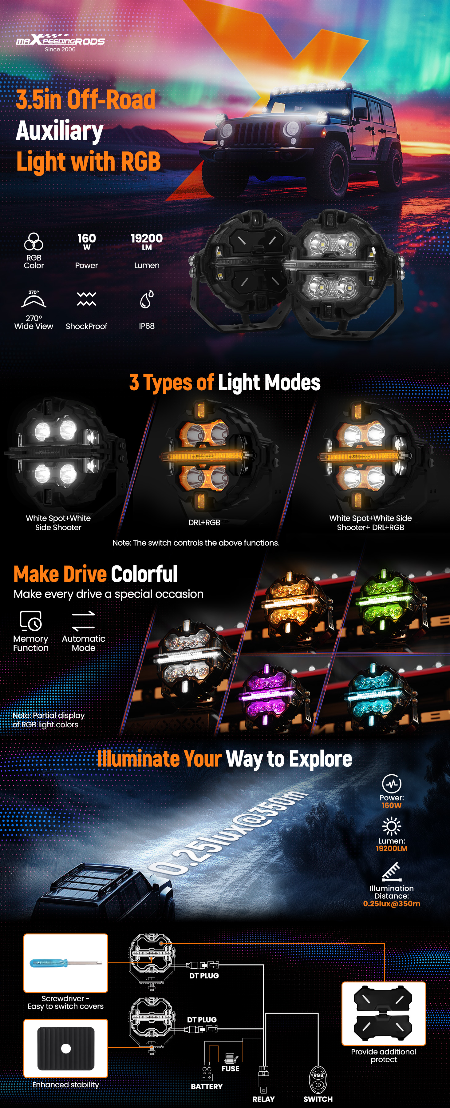 | Mode | Main Light + RGB Background Light + DRL(Amber & White) |