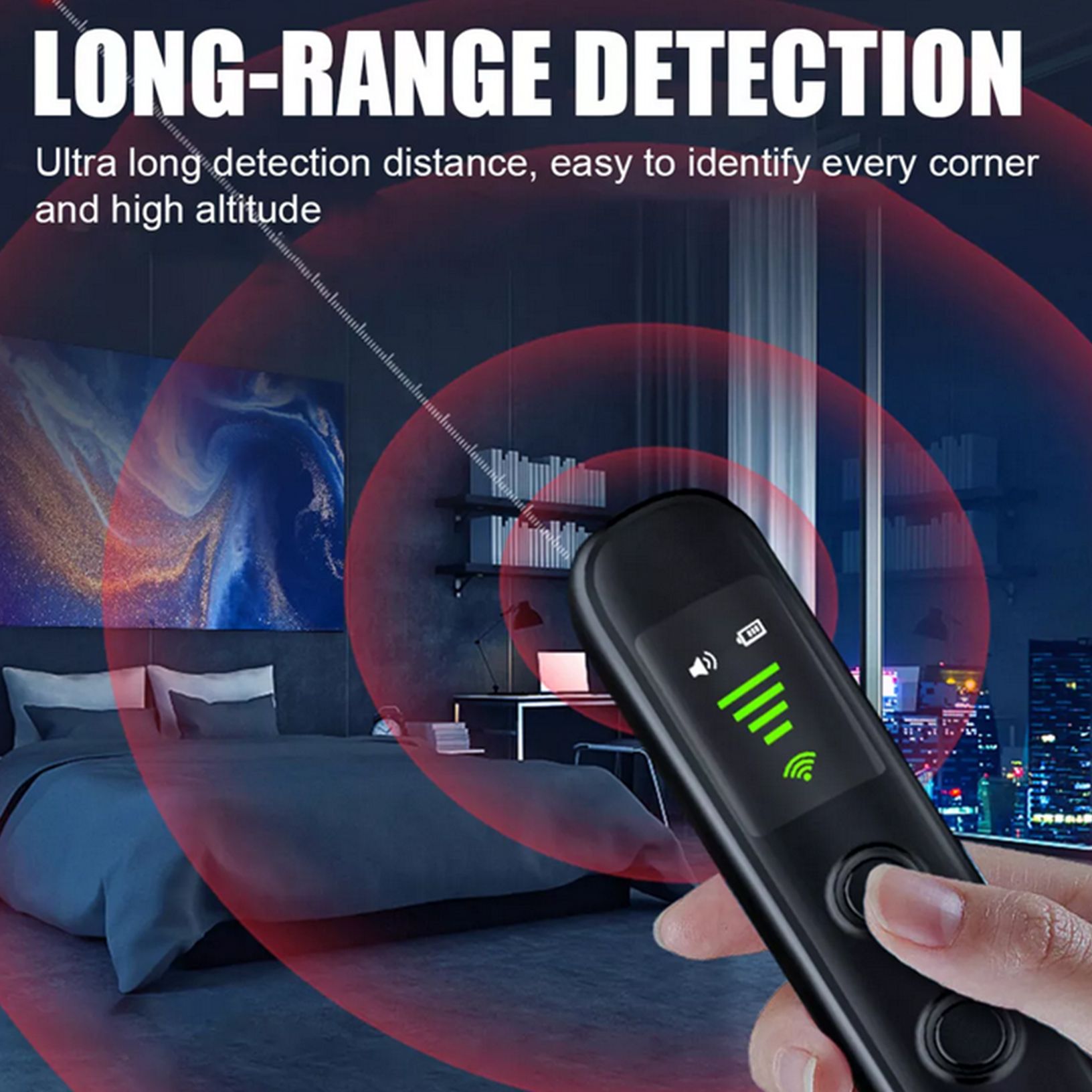 7.Detect hidden pinhole camera, wireless eavesdropper, wireless monitor and micro-locator.