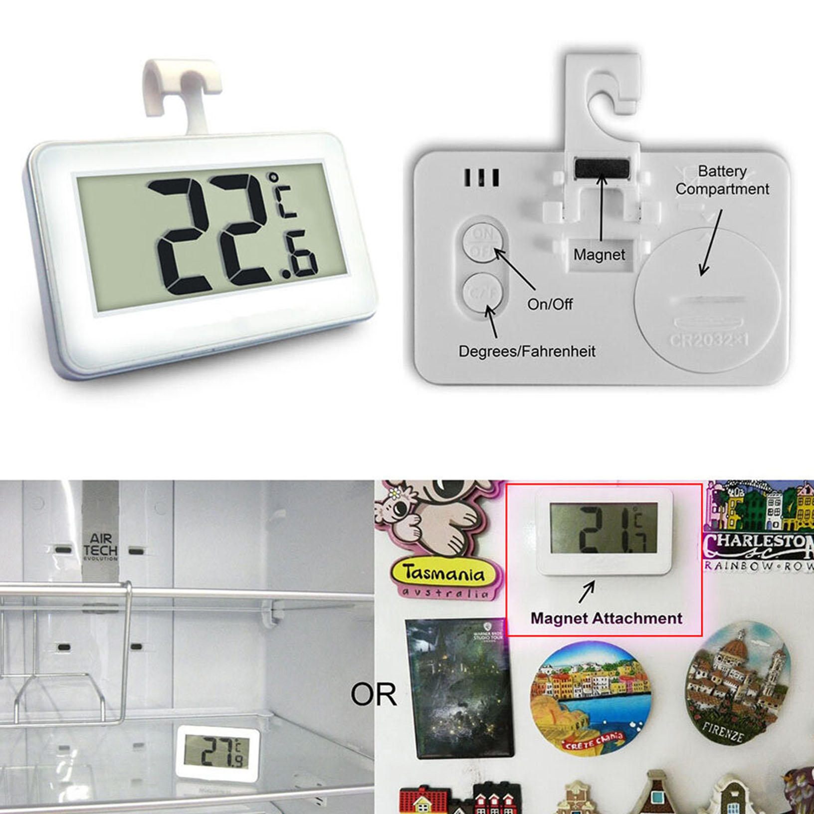 Products with magnets on the back and hook.