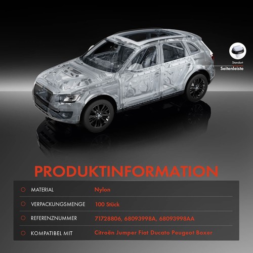| Peugeot | Boxer Kasten | -- | 2006/04-2019/12 | Nylon | Seitenleiste |