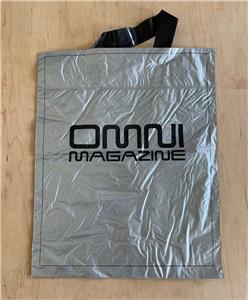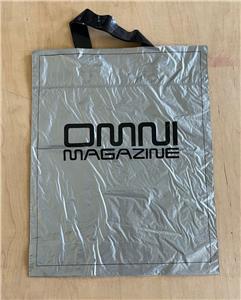 This vintage shopping gift bag is pre-owned in very good condition. Bag measures 15 x 12 inches with black strap handles. Silver with black logo and outlining. Omni Magazine was a science and science fiction magazine published for domestic American and UK markets. It contained articles on science, parapsychology, and short works of science fiction and fantasy. It was published as a print version between October 1978 and 1995. This bag was given out at a trade show for the entertainment industry in the mid-1980s. Vintage swag bag.