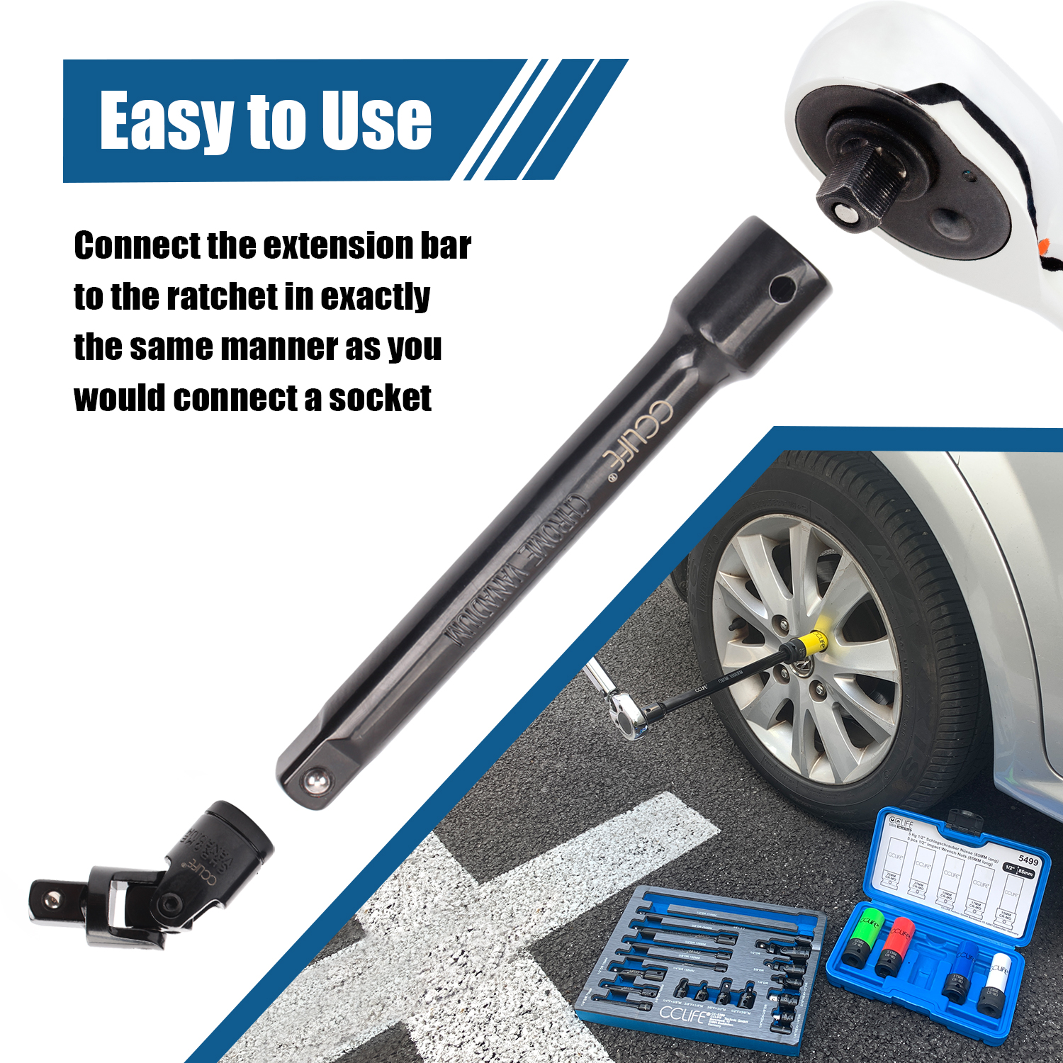 - Umfangreich: Steckschlüssel Verlängerungen ist zum Erreichen von schwer erreichbaren Bereichen. Kardangelenk ist zum Einsatz an Verschraubungen mit Störkanten, schwer zugänglichen Stellen und zur Umgehung von Störkanten. Adapter dient der Verwendung von Stecknüssen mit unterschiedlichen Antriebsgrößen