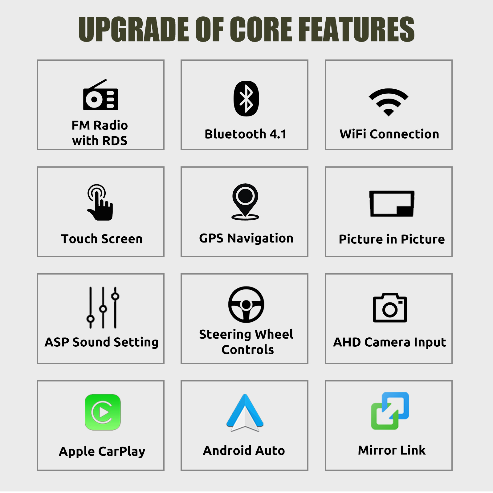 RDS/FM Radio & Bluetooth & ASP Sound: Supports Bluetooth 4.1, with built-in microphone so you can make hands-free calls while driving. Support access to phone book, music playback interface, etc. RDS supported. You can save 18 FM radio stations. Built-in ASP chip. Supports 32-band EQ setting, which can be adjusted according to your personal preference. Which is very similar to your original sound. 4 x 45W amplifier, surround sound and subwoofer output