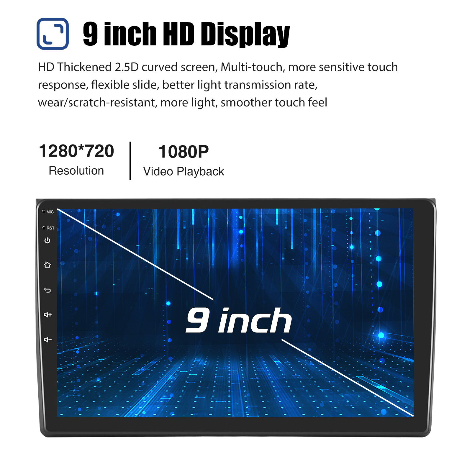Screen: 9 Inch 1280x720 HD capacitive touch screen