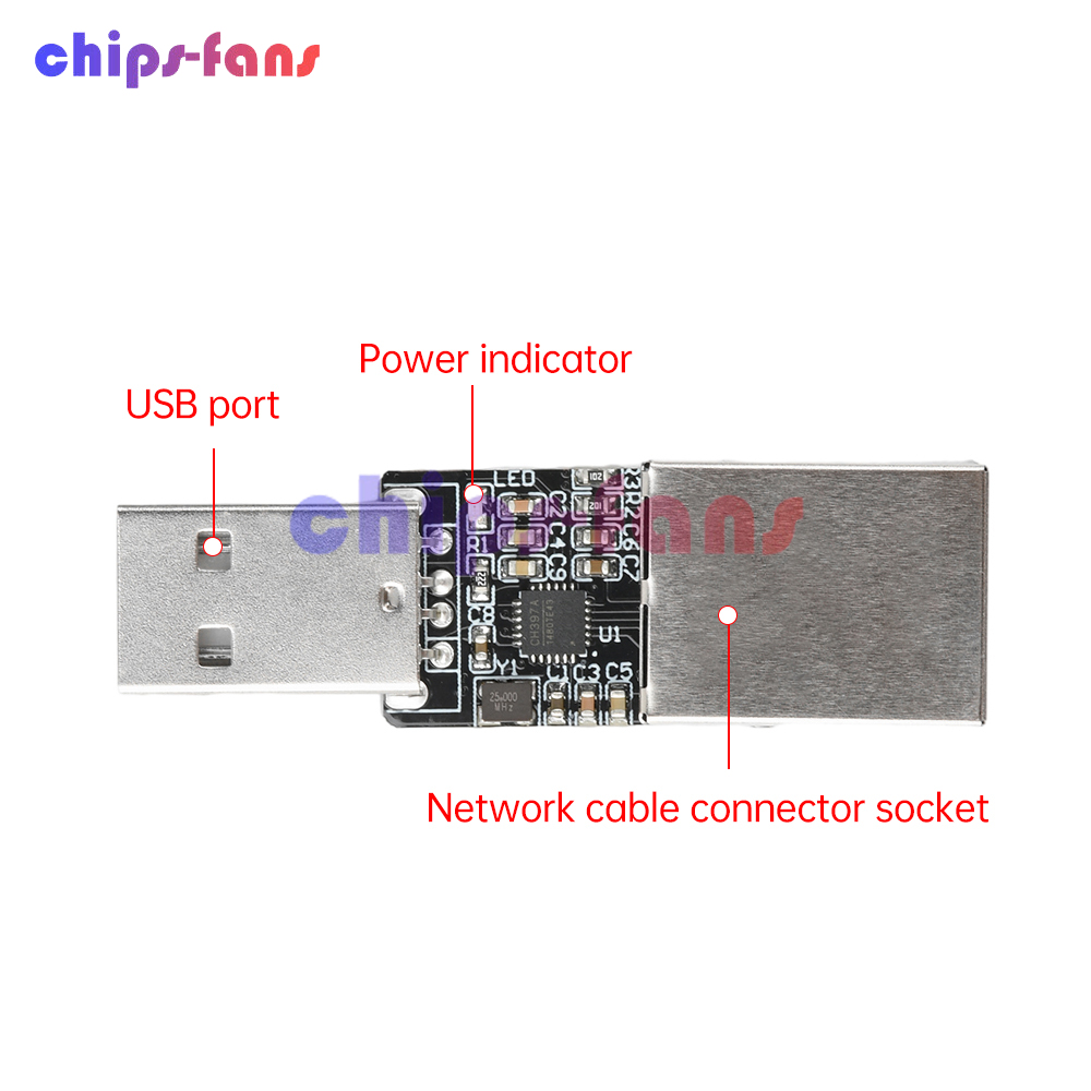 Single-chip USB2.0/2.1 to 10/100M Fast Ethernet, integrated USB PHY and Ethernet MAC and Ethernet PHY support CDC-ECM protocol and CDC-NCM protocol and RNDIS protocol, driver-free installation or optional vendor driver support 10Mbps and 100MbpS rate, compatible with IEEE802.3 10BASE-T/100BASE-TX supports 10M/100M auto-negotiation.