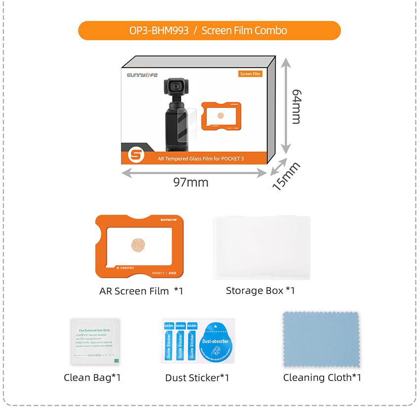 l 1x AR Lens Film + 1x AR Screen Film + 1x Locator