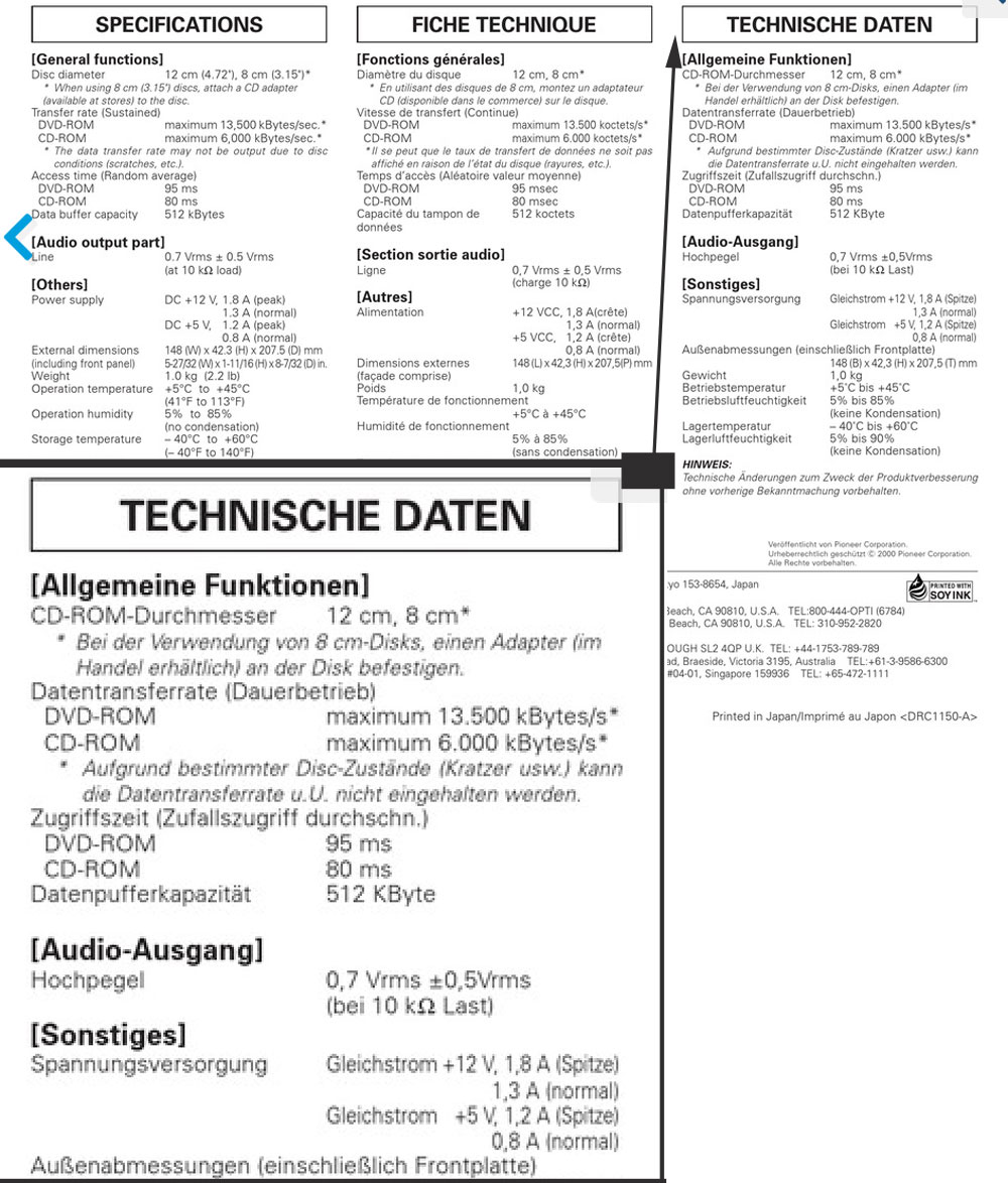 Vitesse de lecture: CD-ROM 40X (6000 kb / s), DVD-ROM 13 500 Ko / s