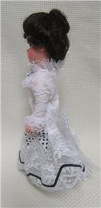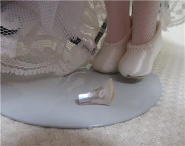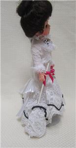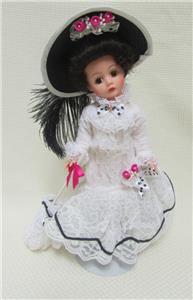 This is a Madame Alexander Miss Eliza Doolittle Doll. She could use a new pair of shoes. They were clear spike heels that have fallen off. One is present and one was lost. Otherwise, very nice doll. 10" tall.