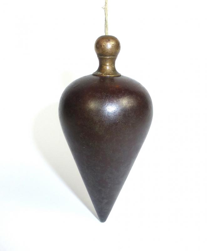 Seltenes Senklot um 1900. Stahl mit Messingschraube. Gewicht: 355 Gramm. Maße: ca. 9 x 4,3 cm. Guter gebrauchter Zustand, altersbedingte Gebrauchsspuren (siehe Fotos)
