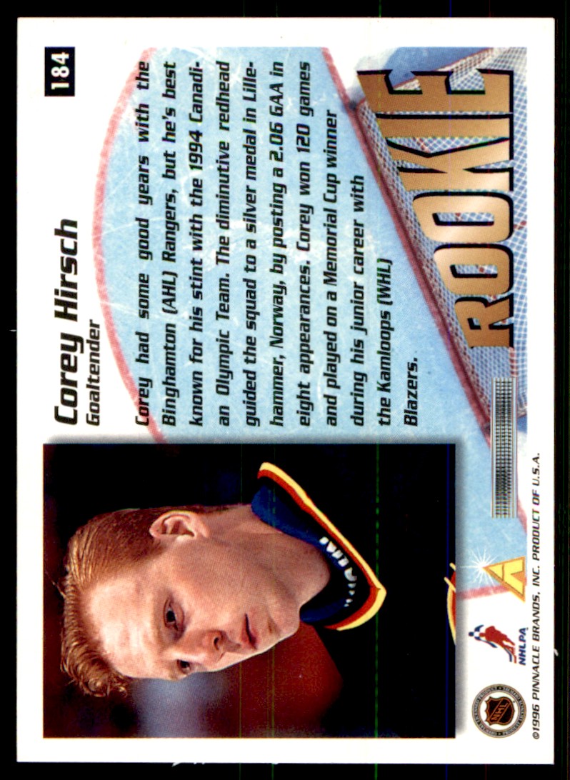 | 1995-96 Summit Hand Signed 'To Josh' Corey Hirsch Auto Vancouver Canucks #184 |