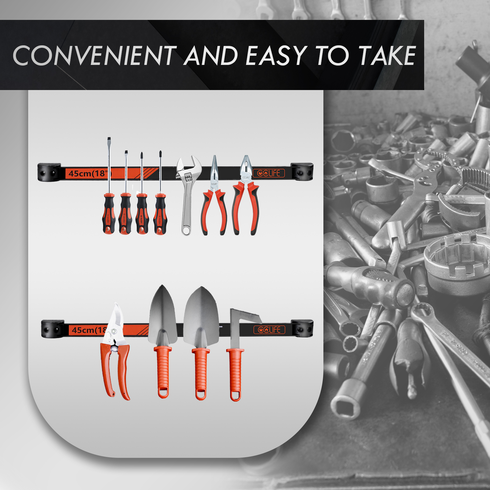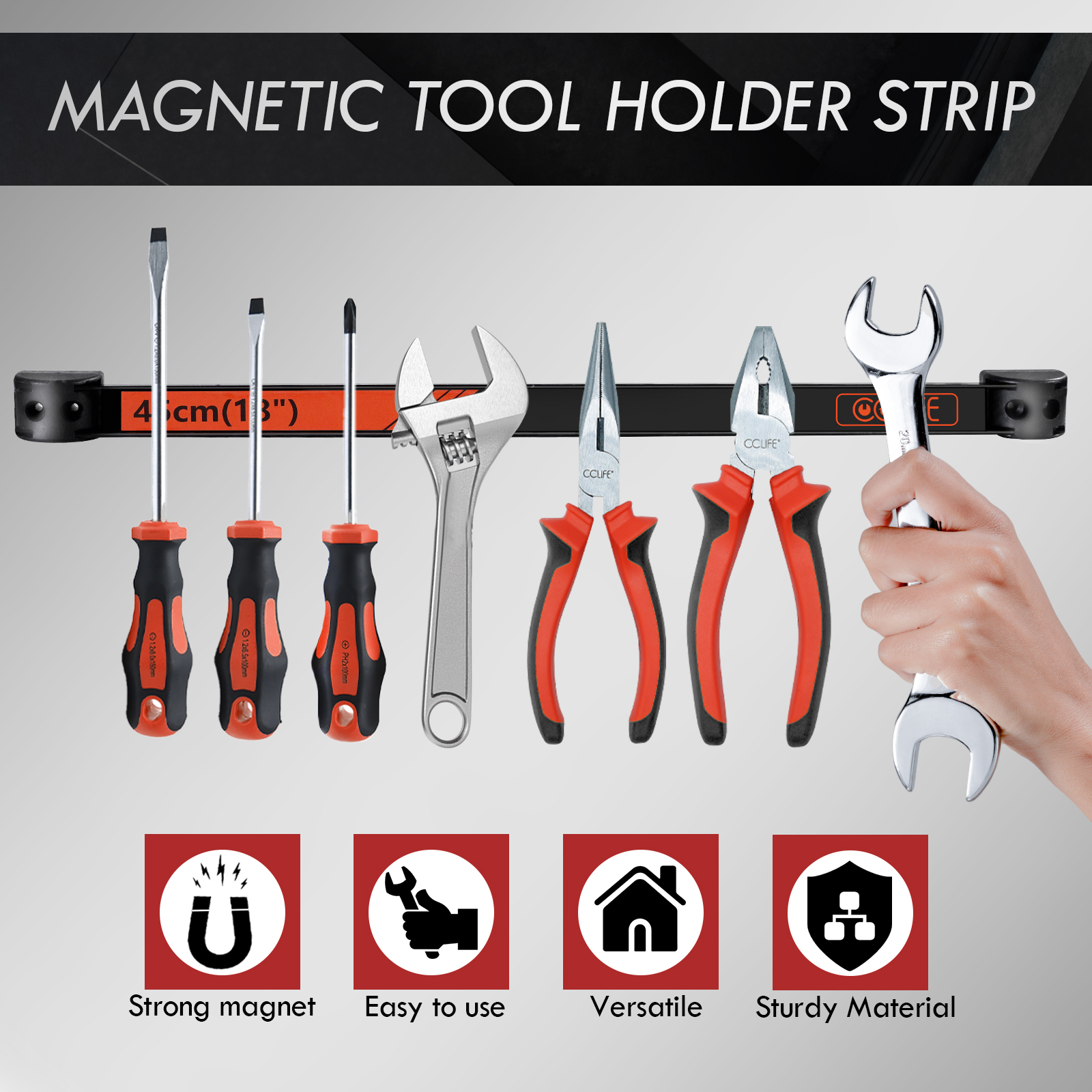- Platzsparend: Verwenden Sie diese Magnetleiste, um Ihre unordentliche Werkzeugkiste endlich loszuwerden und Ihre Schraubenschlüssel, Zangen und Schraubendreher ordentlich zu organisieren. Dies spart Zeit und erleichtert die Arbeit erheblich.
