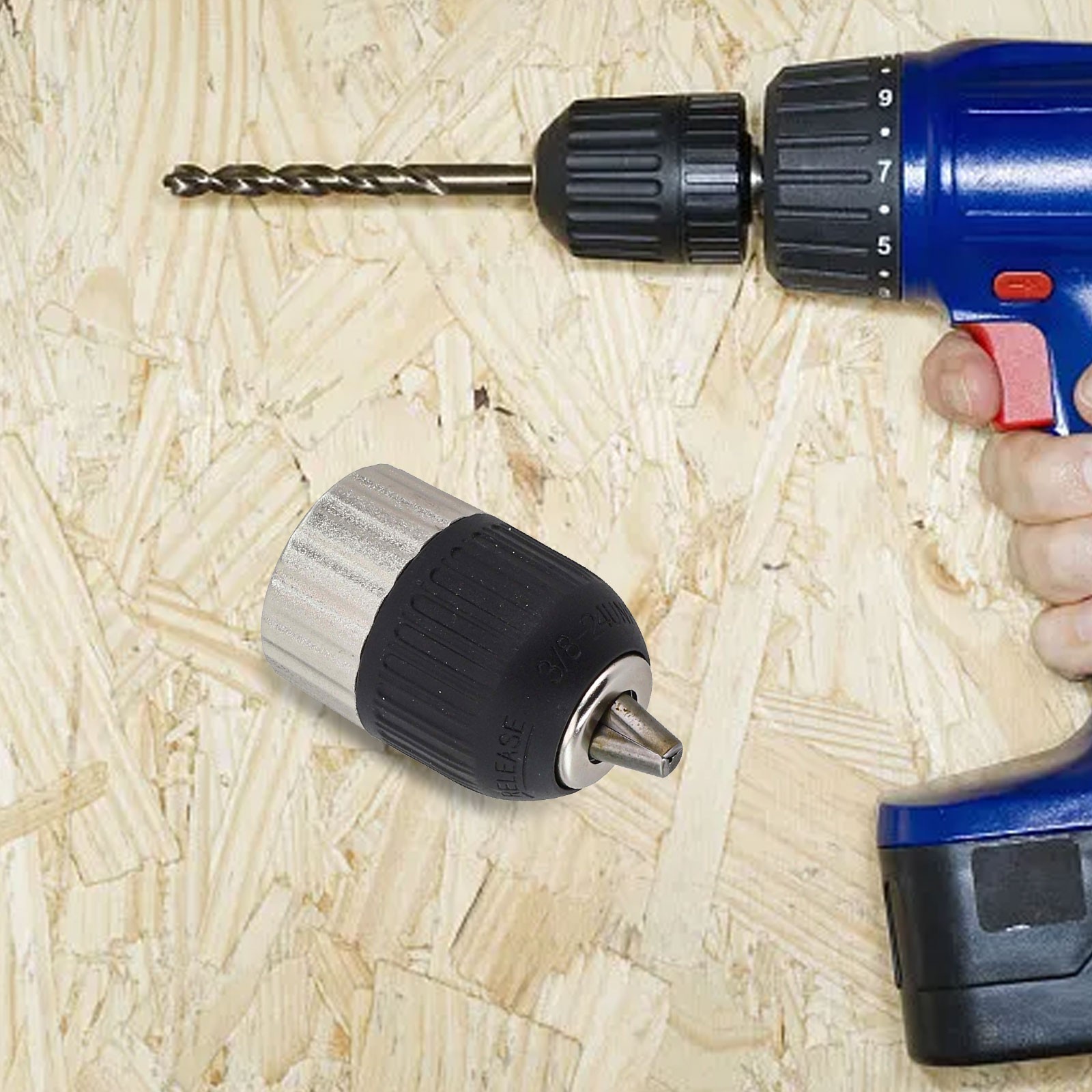 *Adaptateur de mandrin de et sans clé rapide changement 2-13mm 3/8-24UNF (Sans manchon à six pans, à acheter séparément)