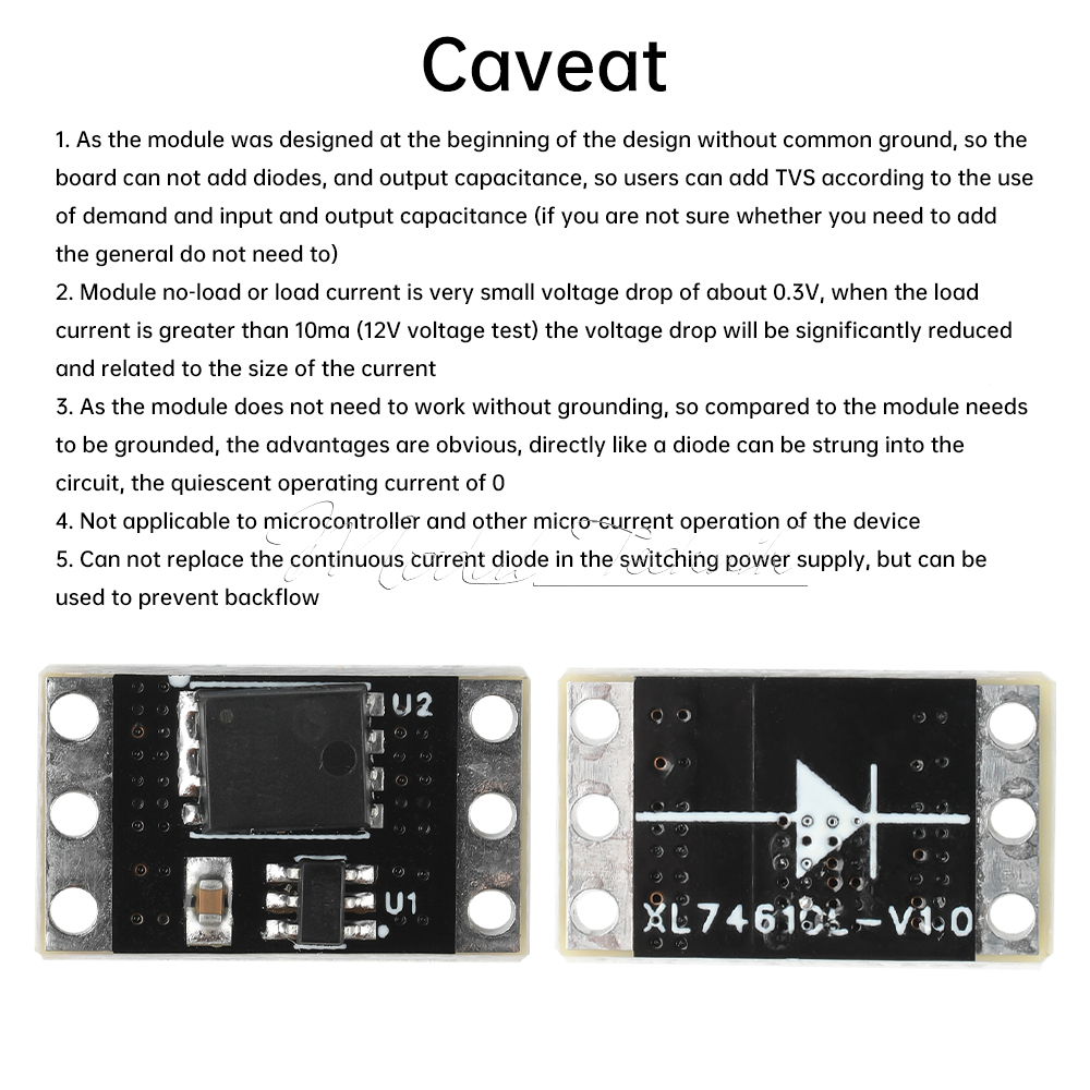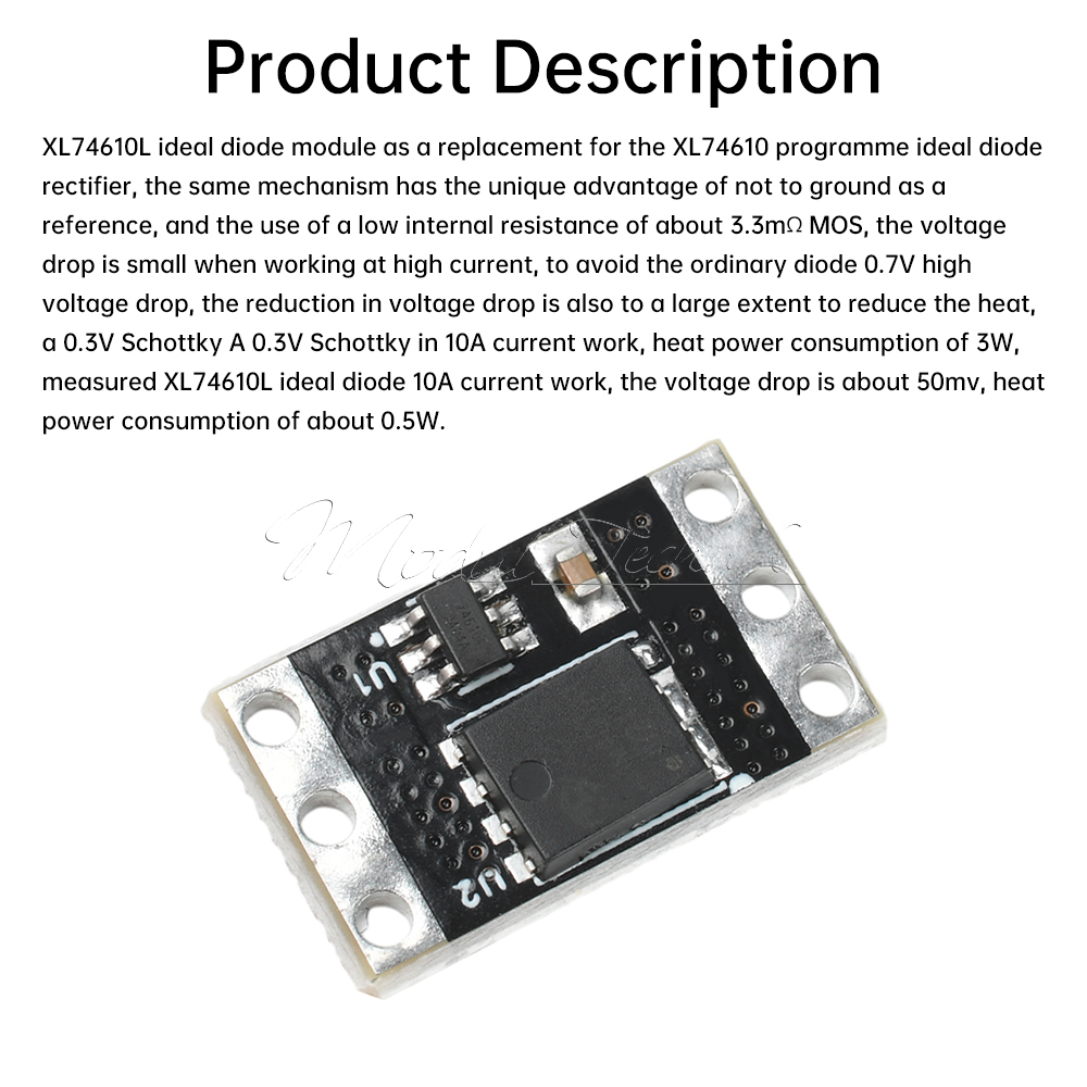 XL74610L ideal diode module for the replacement of the XL74610 program ideal diode rectifier, the same mechanism's unique advantage is not to ground as a reference, and the use of a low internal resistance of about 3.3mΩ MOS, the voltage drop is small when working with high currents, to avoid the ordinary diode 0.7V high voltage drop, the reduction in voltage drop is also to a large extent to reduce the heat, a 0.3V Schottky A 0.3V Schottky in 10A current work, heat power consumption of 3W, measured XL74610L ideal diode 10A current work, the voltage drop is about 50mv, heat power consumption of about 0.5W!