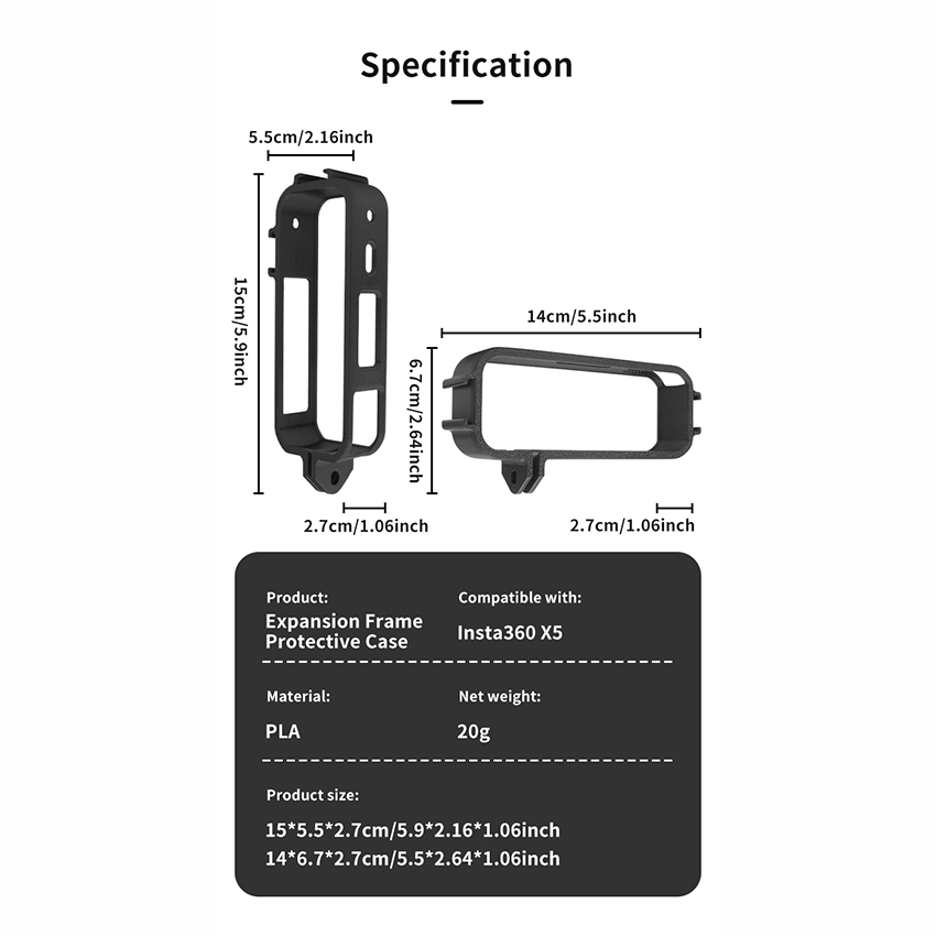 l Applicable for Insta360 X5 expansion bezel case made of PLA material, strong wear-resistant and drop-resistant, accurate modeling highly adapted to the real machine 1:1 accurate modeling of each hole are accurately adapted to the degree of fit up to 99%