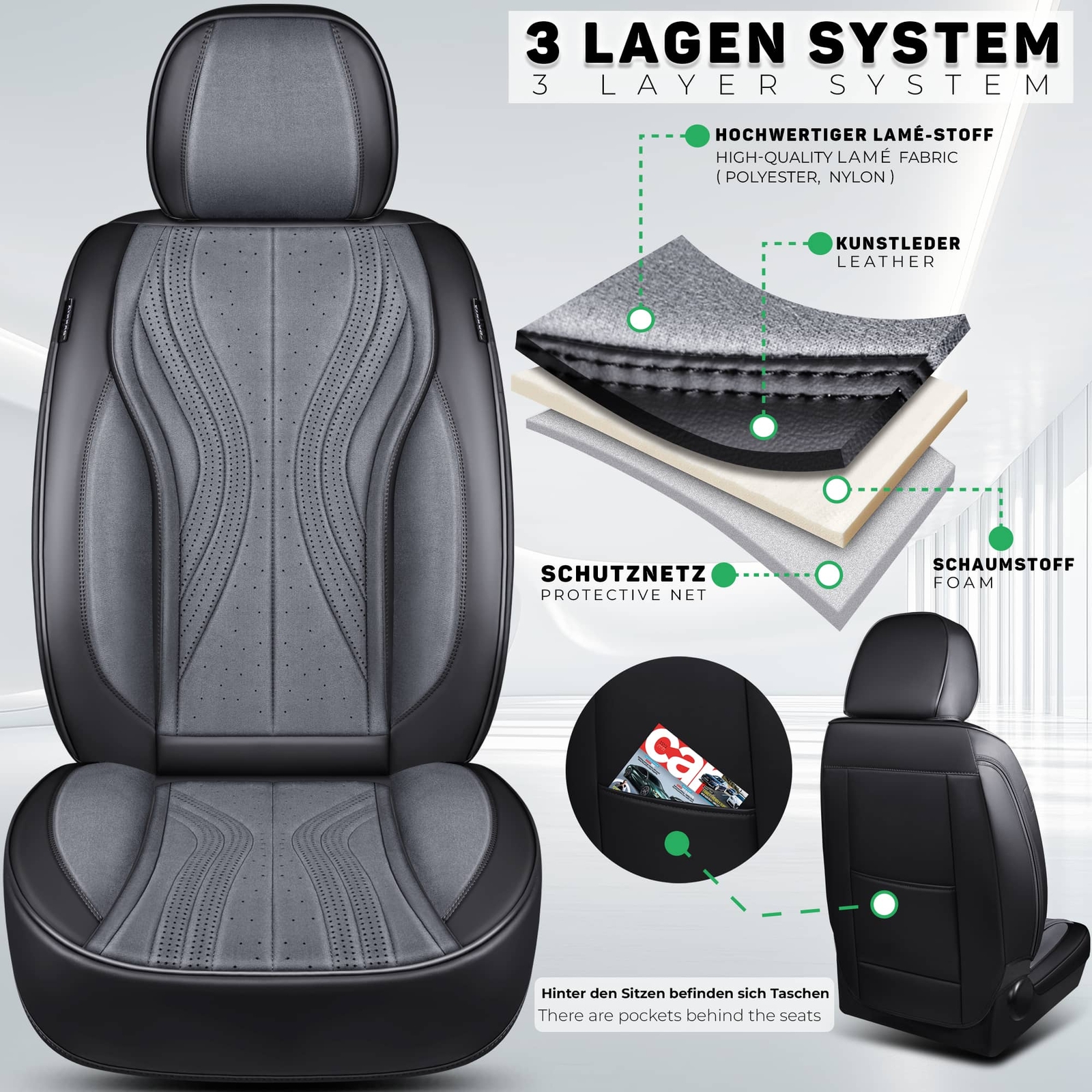 - 3-Lagen System für höchsten Komfort: Die Schonbezüge bestehen aus einem innovativen 3-Lagen-System, das aus hochwertigem Kunstleder, einer Schaumstoffkaschierung und einem Schutznetz besteht. Dieses System sorgt nicht nur für eine ausgezeichnete Passform, sondern auch für einen besonders hohen Komfort bei jeder Fahrt.