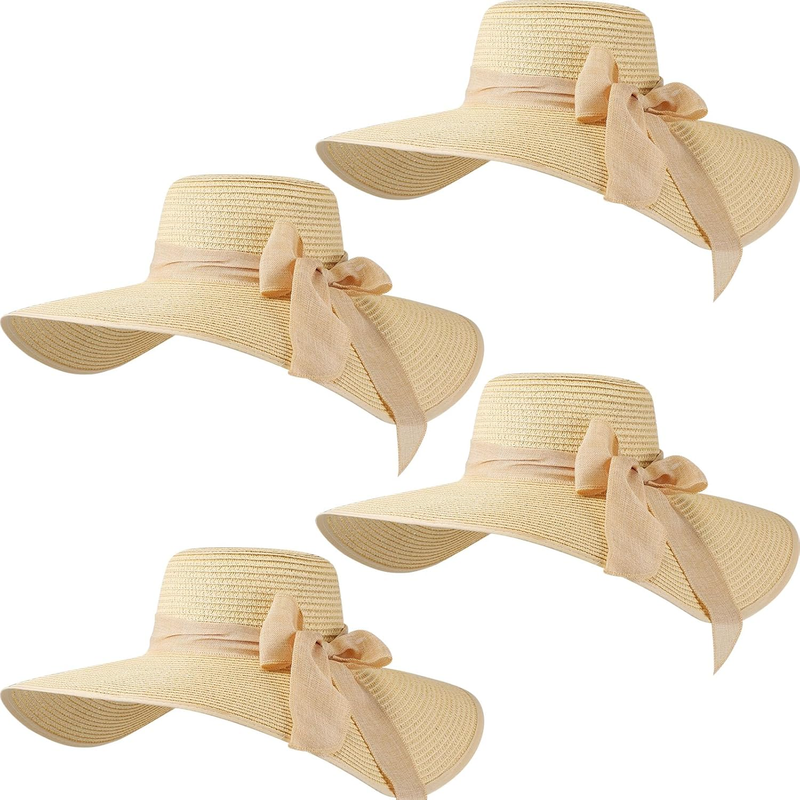 Sintuff 4 Pcs Women'S Wide Brim Straw Hats Big Floppy Foldable Roll up Cap Beach Sun Hat UPF 50+ for Summer