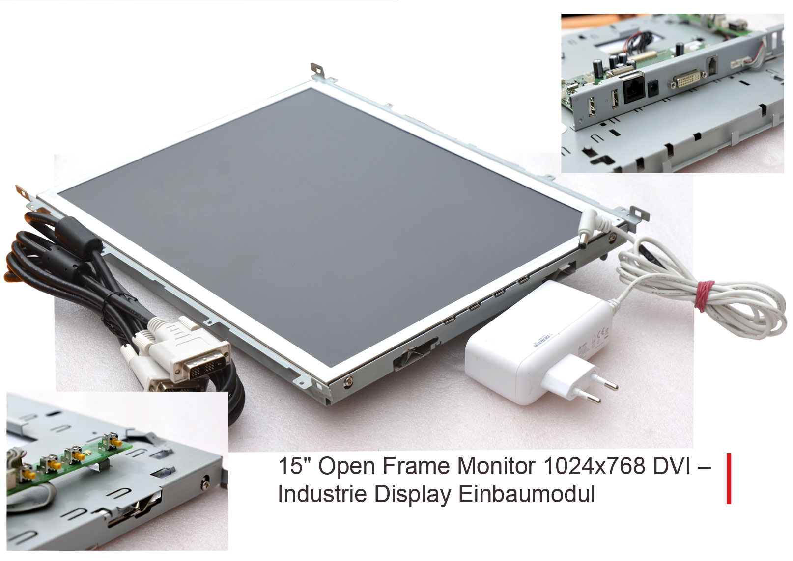 Open Frame Monitor Display 15" 38,1cm 1024x768 DVI