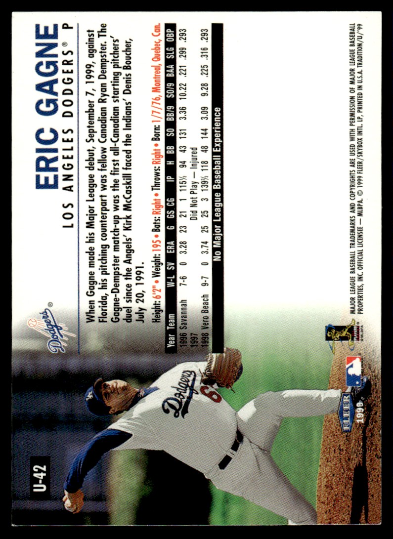| 1999 FLEER TRADITION ROOKIE ERIC GAGNE | ||||||||||||