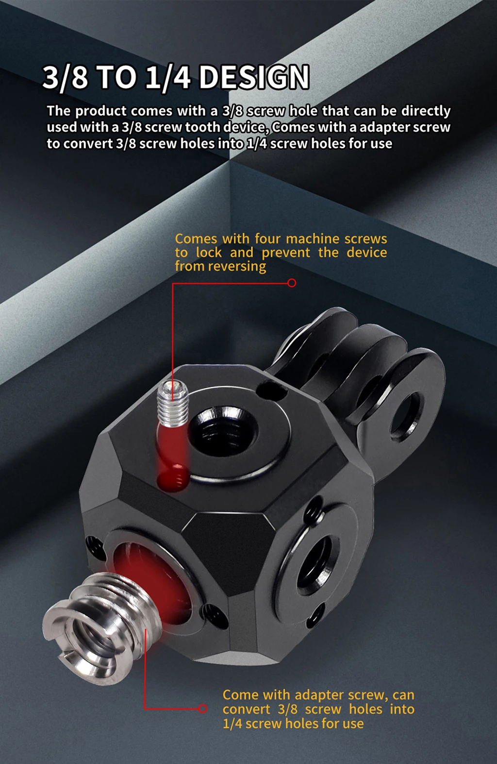 The Versatile Mini Magic Cube Transfer Screw Holes ARRI 1/4" 3/8" Adapter is a must-have accessory for GoPro DJI Action cameras, DSLR cameras, vlogging kits, flashlights, and tripod brackets. This adapter allows you to easily switch between different screw sizes and tripod monopod stick, making it incredibly versatile and convenient for various applications.