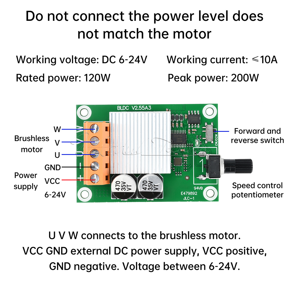 Wiring: U V W connected to the brushless motor