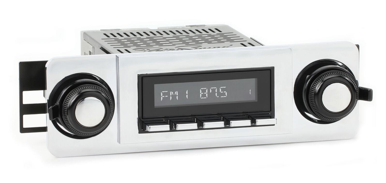 The RetroSound® Redondo-RS radio is the perfect solution for select 60s-70s Mopar, Ford, and Volkswagen vehicles with period-correct knobs and classic push-buttons. The Redondo-RS has an independent display, control shafts, and push-button assemblies allowing each component to be adjusted to achieve the perfect fit.