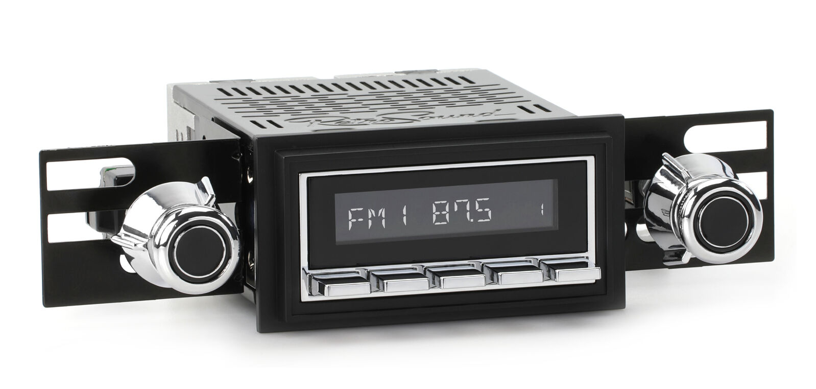 The RetroSound® RetroRadio® is our most versatile Radio Face, designed after traditional 2-shaft radios with classic push-buttons found in thousands of makes & models from the 40s-80s. Combined with hundreds of faceplates, bezels, and replica knobs, the RetroRadio is the most authenticsolution for adding modern audio to classic cars and trucks. The RetroRadio is available in black or chrome, with the choice of black, chrome, or ivory push-buttons.