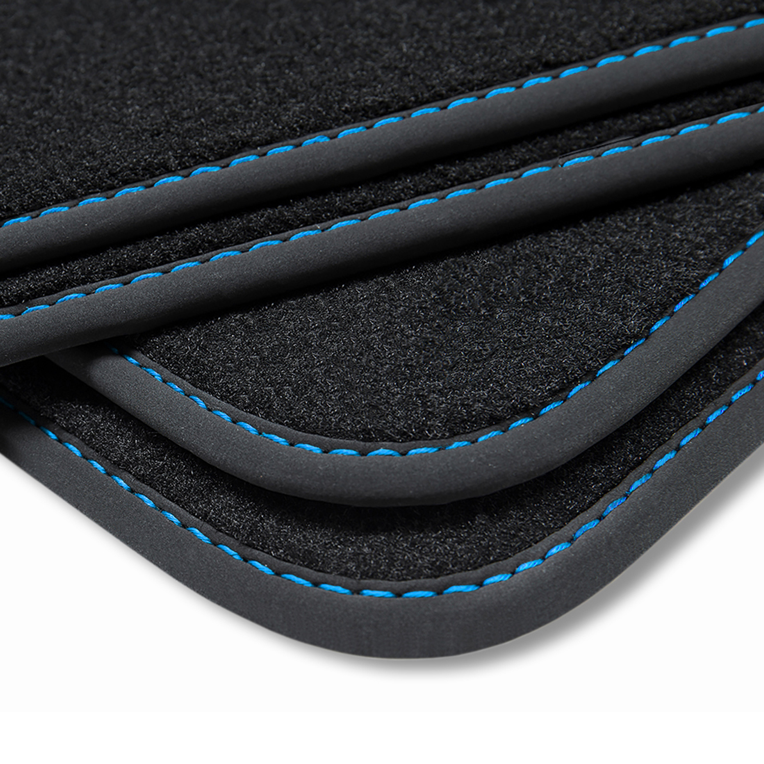 - Schwarze Fußmatten mit Bandeinfassung und Ziernähten