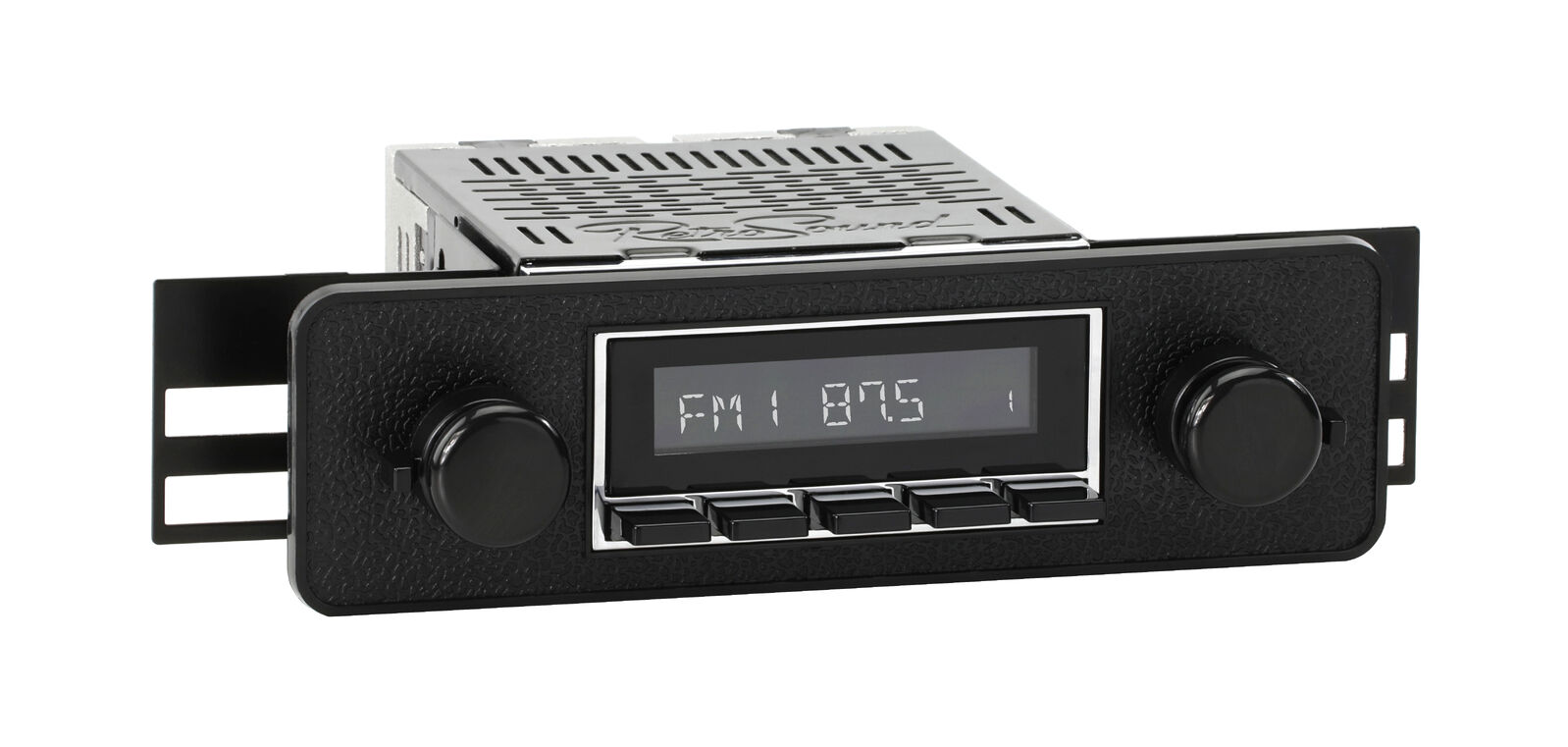 The RetroSound® RetroRadio® is our most versatile Radio Face, designed after traditional 2-shaft radios with classic push-buttons found in thousands of makes & models from the 40s-80s. Combined with hundreds of faceplates, bezels, and replica knobs, the RetroRadio is the most authenticsolution for adding modern audio to classic cars and trucks. The RetroRadio is available in black or chrome, with the choice of black, chrome, or ivory push-buttons.