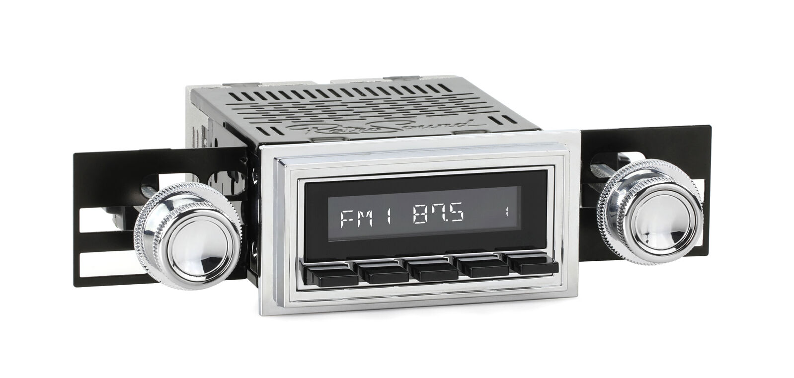 The RetroSound® RetroRadio® is our most versatile Radio Face, designed after traditional 2-shaft radios with classic push-buttons found in thousands of makes & models from the 40s-80s. Combined with hundreds of faceplates, bezels, and replica knobs, the RetroRadio is the most authentic solution for adding modern audio to classic cars and trucks. The RetroRadio is available in black or chrome, with the choice of black, chrome, or ivory push-buttons.