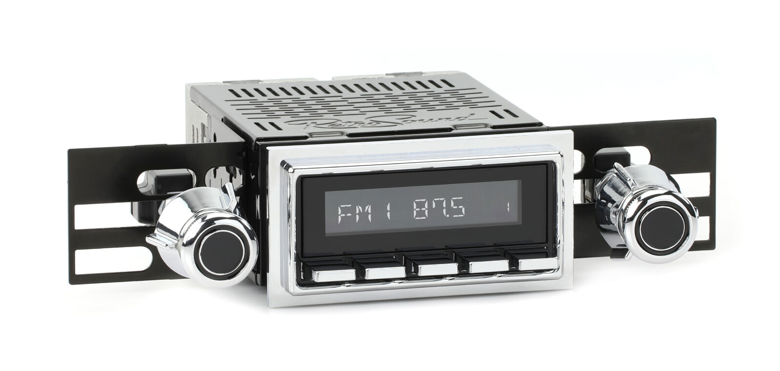 The RetroSound® RetroRadio® is our most versatile Radio Face, designed after traditional 2-shaft radios with classic push-buttons found in thousands of makes & models from the 40s-80s. Combined with hundreds of faceplates, bezels, and replica knobs, the RetroRadio is the most authentic solution for adding modern audio to classic cars and trucks. The RetroRadio is available in black or chrome, with the choice of black, chrome, or ivory push-buttons.