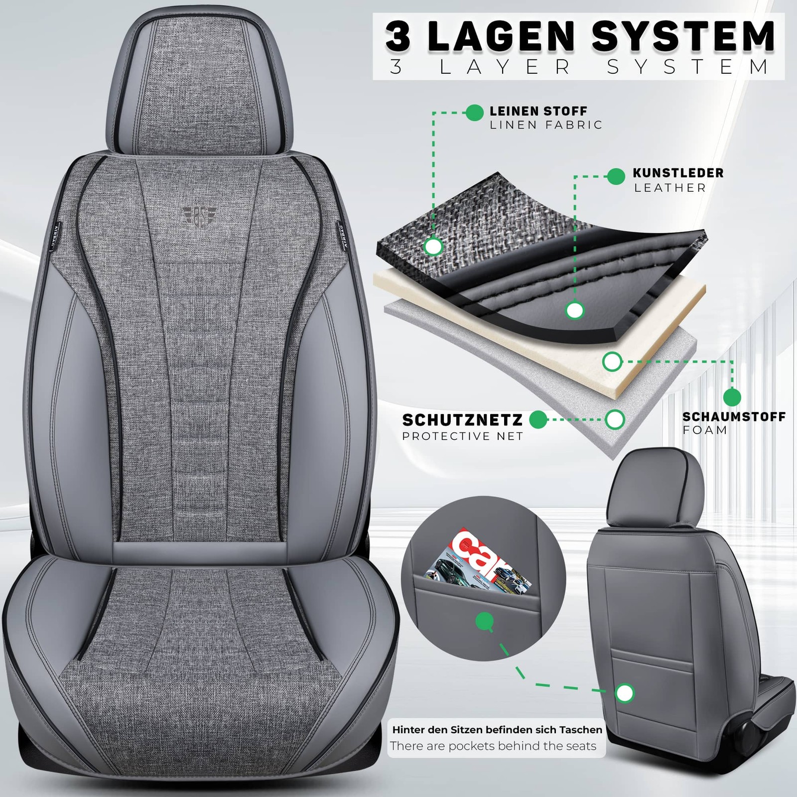 - Komfort & Schutz: Die innovative 3-Lagen-Technologie sorgt für ein angenehmes Sitzgefühl und schützt Ihre Sitze zuverlässig vor Abnutzung, Schmutz und Flecken.