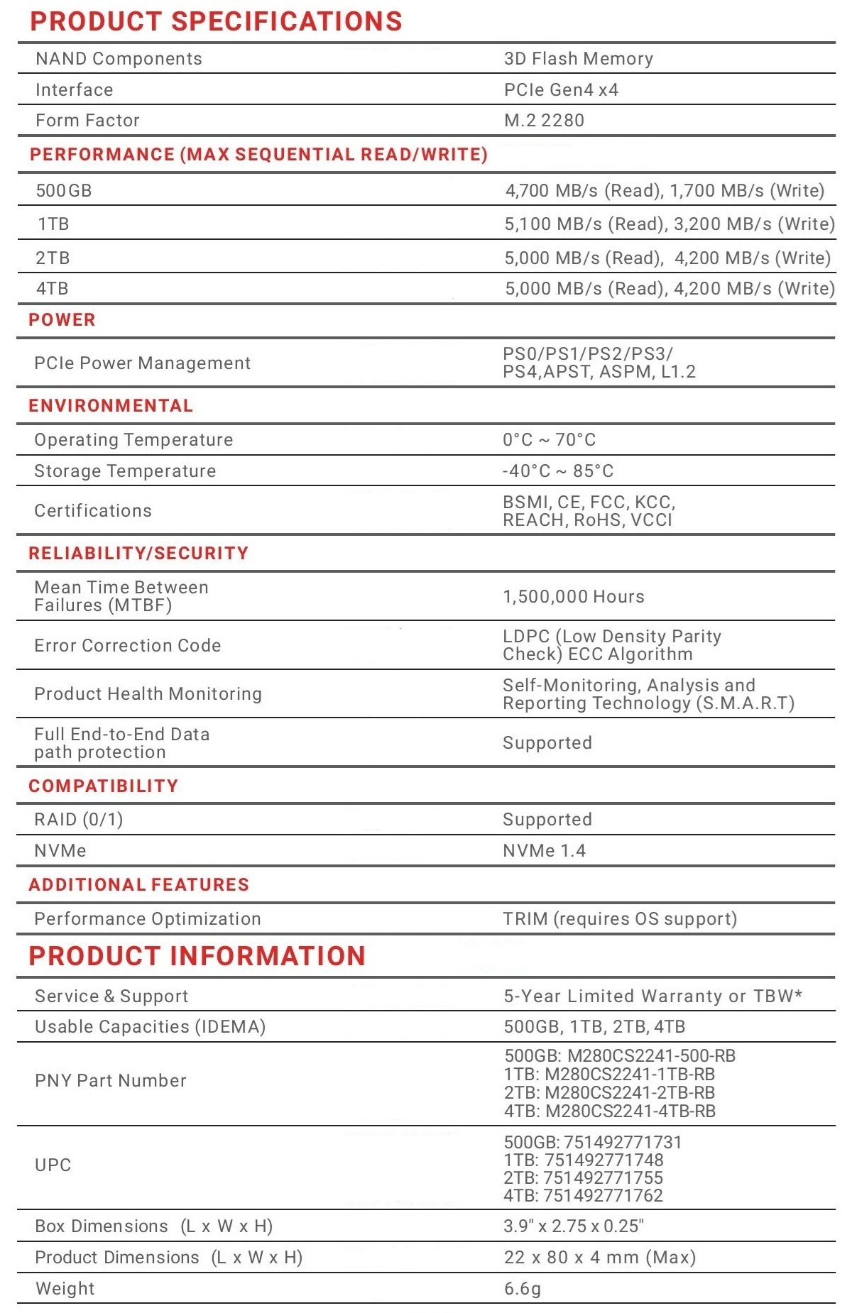 Product Specifications