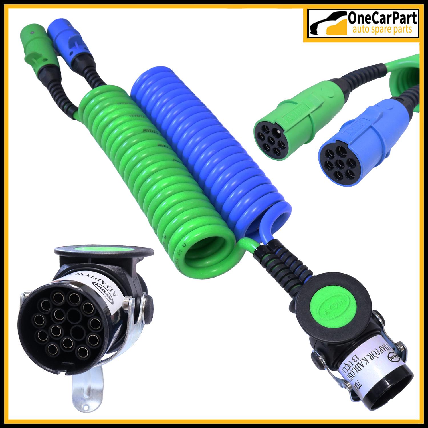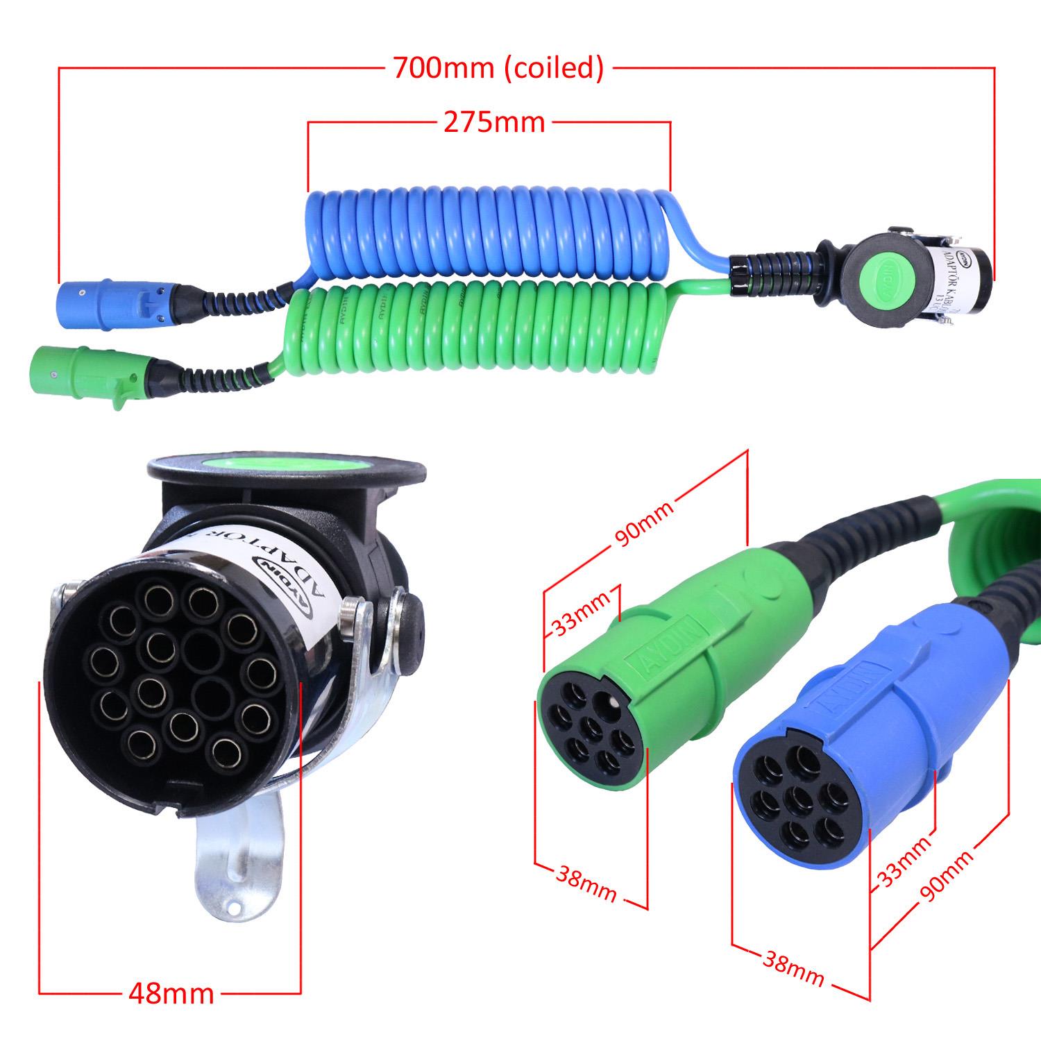 Trailer Electrical Suzie Coiled Cable 24V 7 / 13 Pin Single Twin Connectors 4.5m