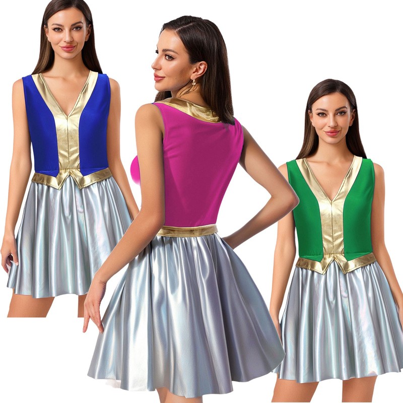 Crafted from a blend of polyester, sequin, and spandex, the dress is stretchy, shiny, and offers a comfortable fit for all-day wear.