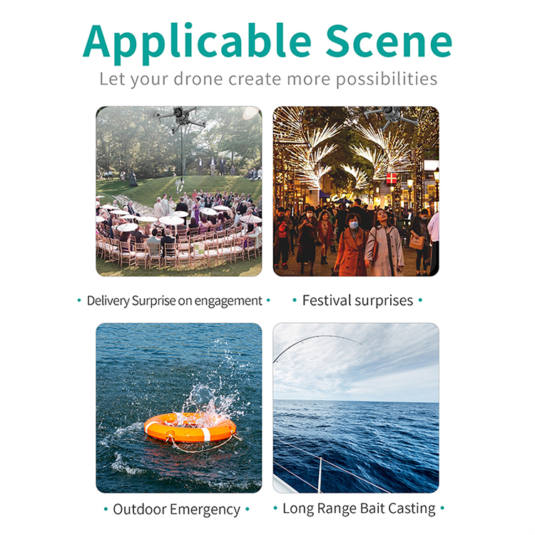 l It can be used for advertising, bait throwing, gift throwing, wedding flower delivery, ring delivery, food delivery, wild medical material rescue, family reunion, Halloween, Christmas, Valentine's Day, birthday party, beach party and many other scenes, adding unlimited fun to life