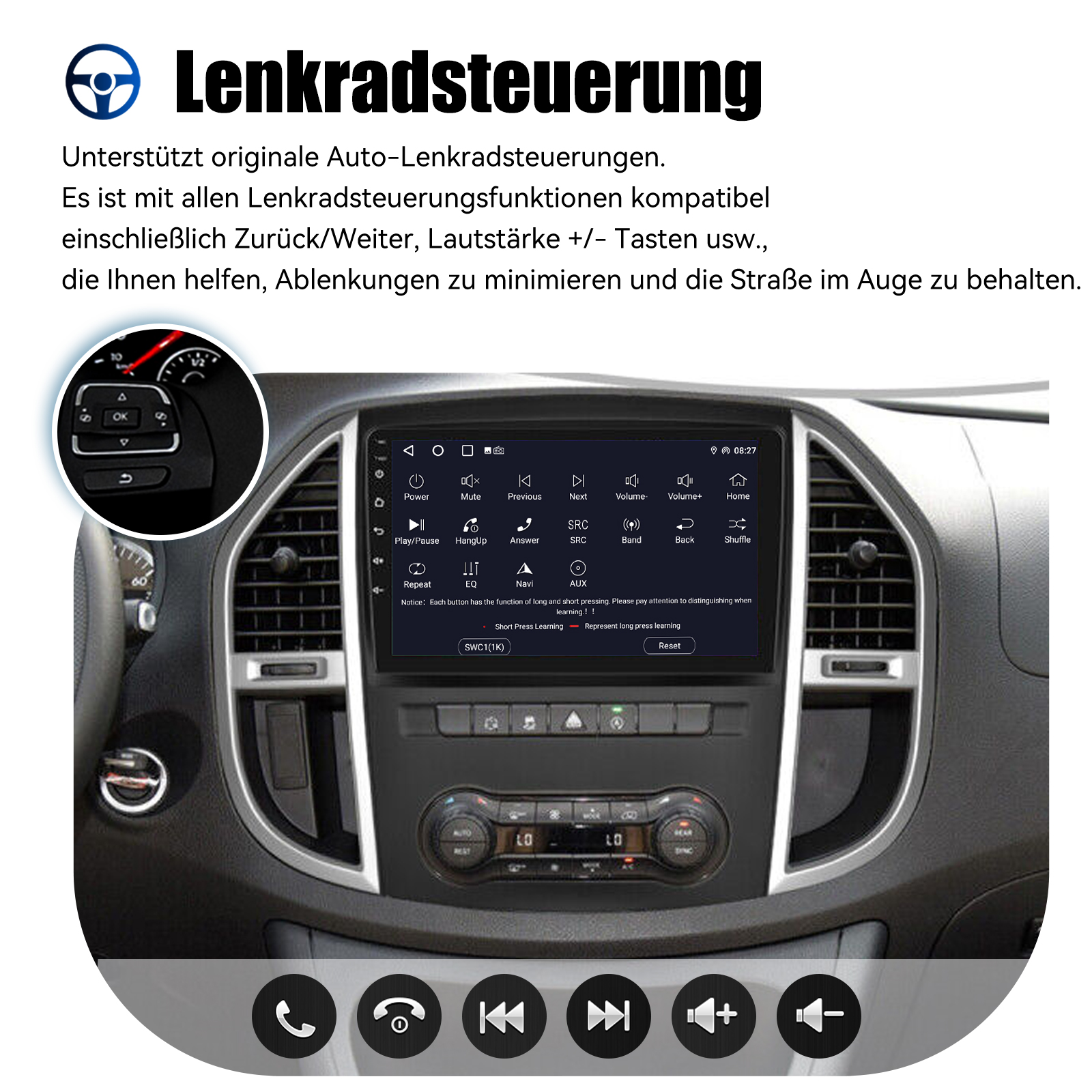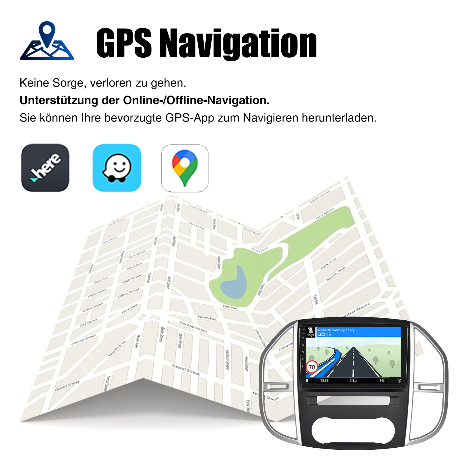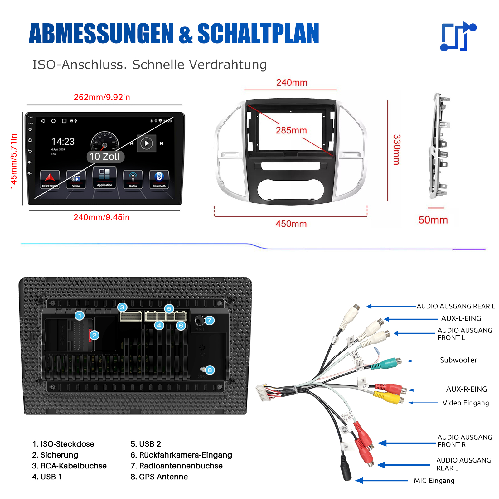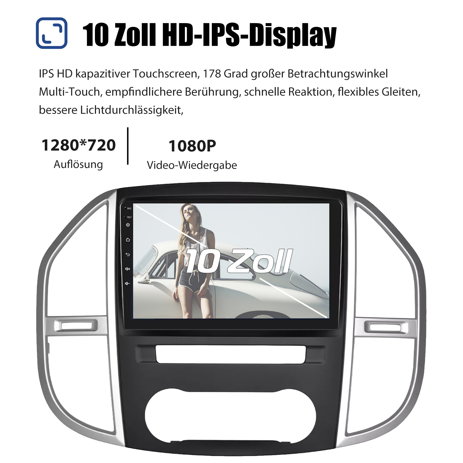 10 Zoll Android 14 Autoradio Für Mercedes Benz Vito 3 W447 2014-2020: Das Android Autoradio mit 10" 1280* 720 IPS kapazitivem Touchscreen, 4GB RAM und 64GB ROM ermöglicht das Herunterladen Ihrer Lieblings-Apps und -Videos, damit das Autofahren nicht mehr langweilig wird. Kein zusätzlicher Rahmen, kein Kabelwechsel, Plug and Play.