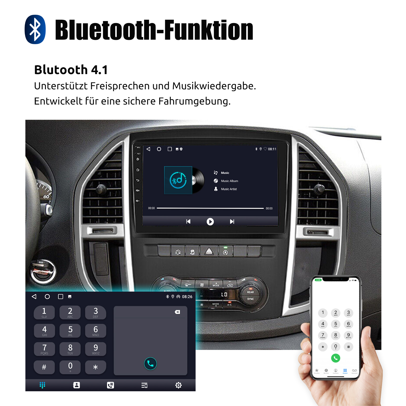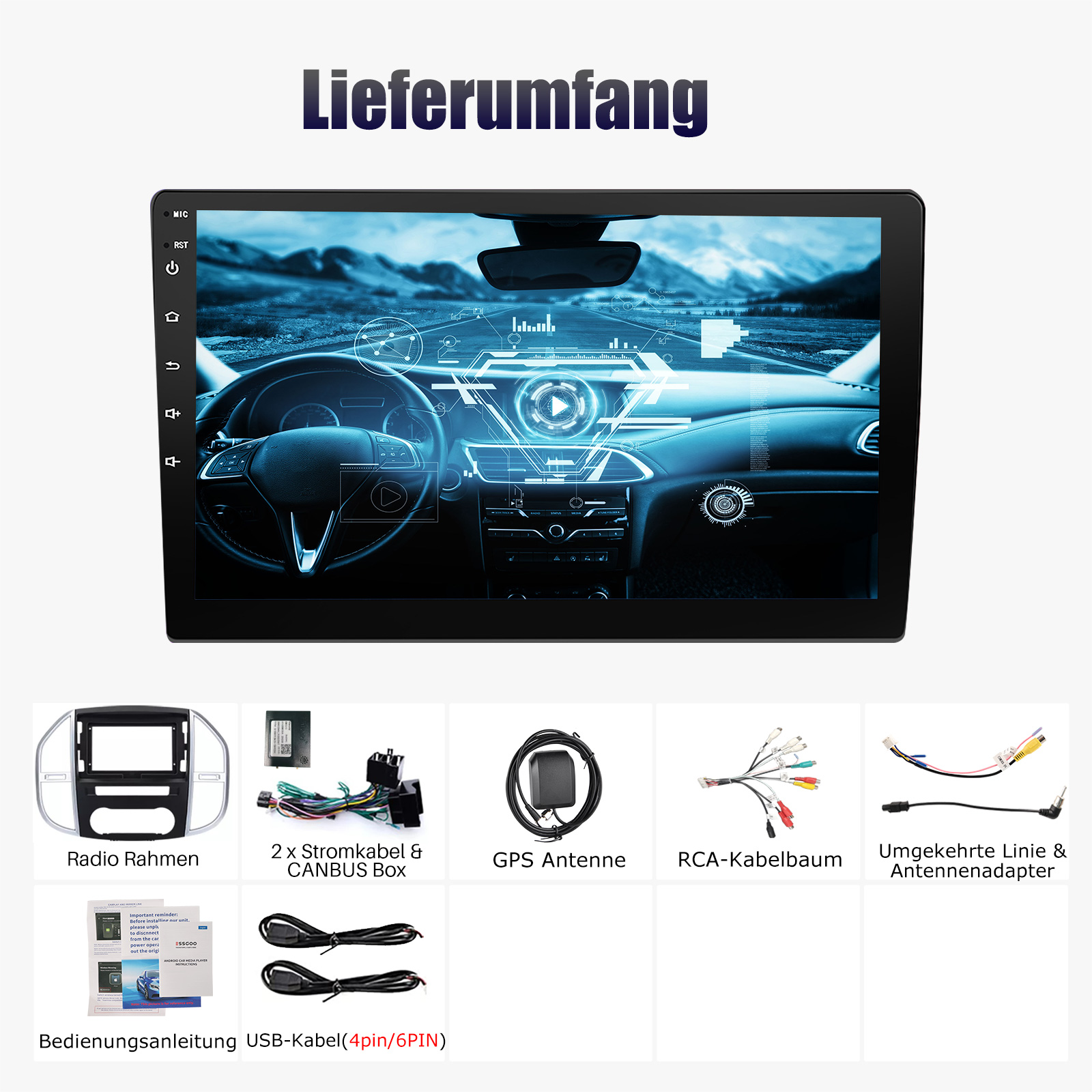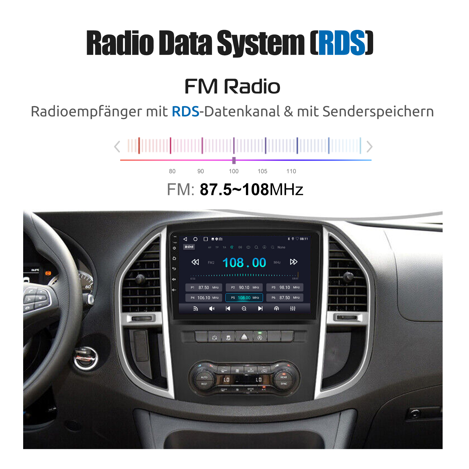 RDS/FM-Radio und Bluetooth und ASP Sound: Unterstützt Bluetooth 4.1, mit integriertem Mikrofon, damit Sie während der Fahrt freihändig telefonieren können. Unterstützt den Zugriff auf das Telefonbuch, die Musikwiedergabeschnittstelle usw. RDS unterstützt. Sie können 18 FM Radiosender speichern. Eingebauter ASP-Chip. Unterstützt 32-Band-EQ-Einstellung, die nach Ihren persönlichen Vorlieben eingestellt werden kann.Der Ihrem Originalsound sehr ähnlich ist.4 x 45W Verstärker, Surround-Sound und Subwoofer-Ausgang.