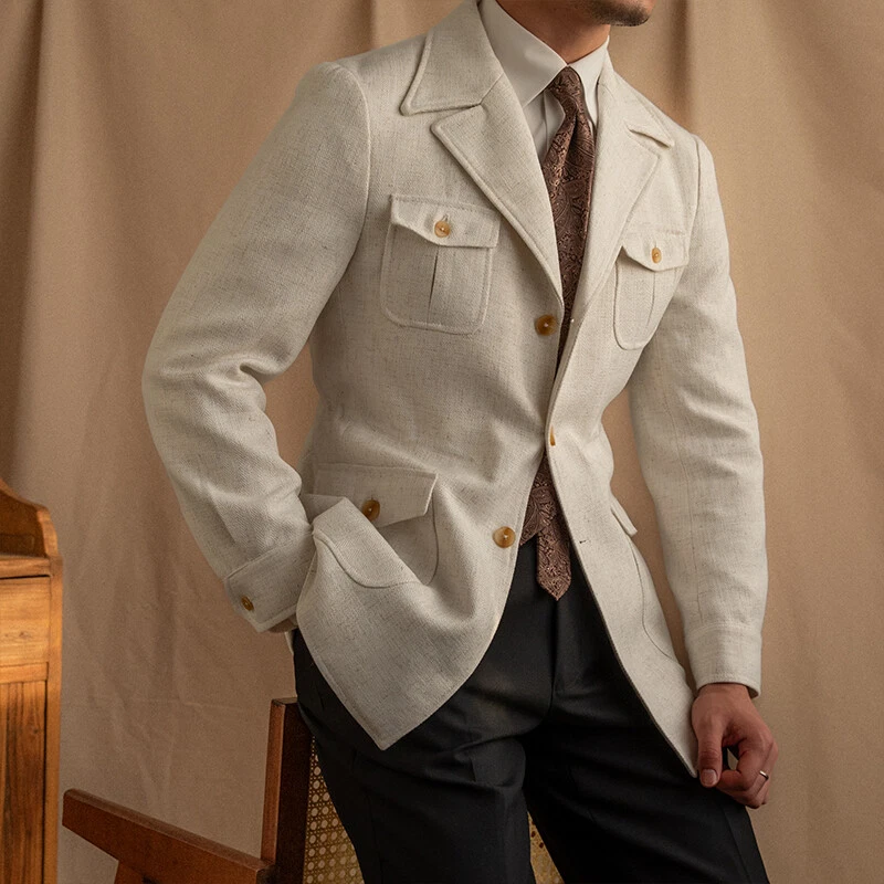 Men's British Style Hunting Lapel Collar Retro Jacket Coat Casual Outwear Formal