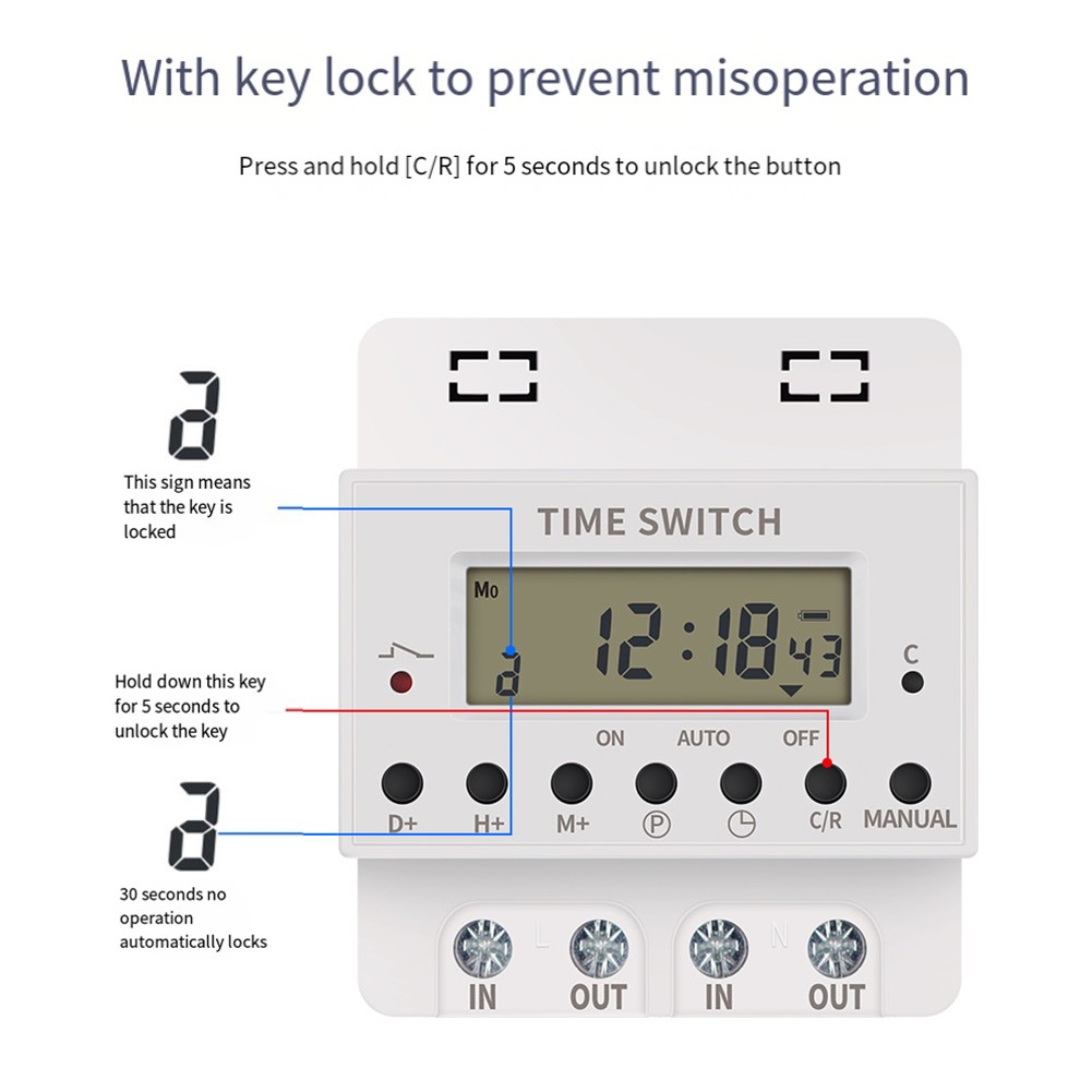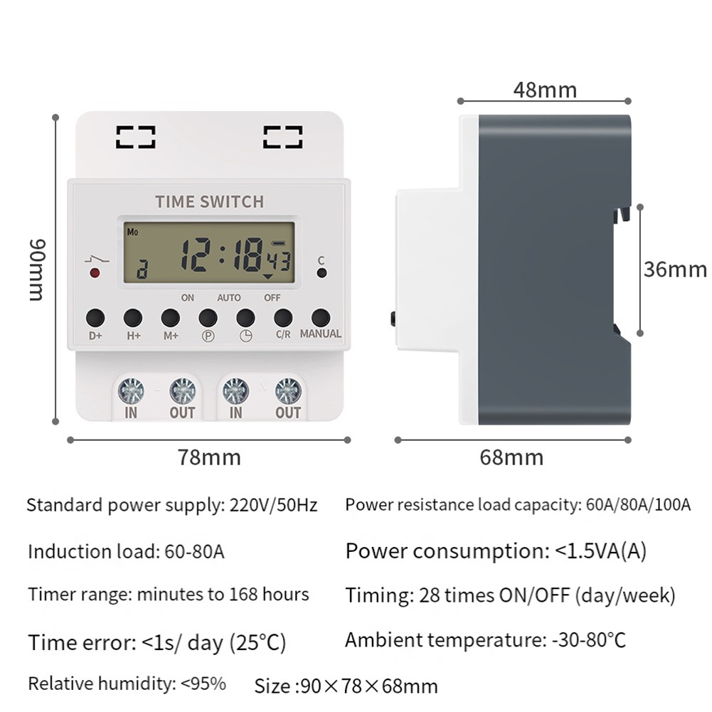 *High-power timer switch, can directly load 6 kilowatt motors, 28 sets of settings, 168 hours of long time setting, 1s short time setting