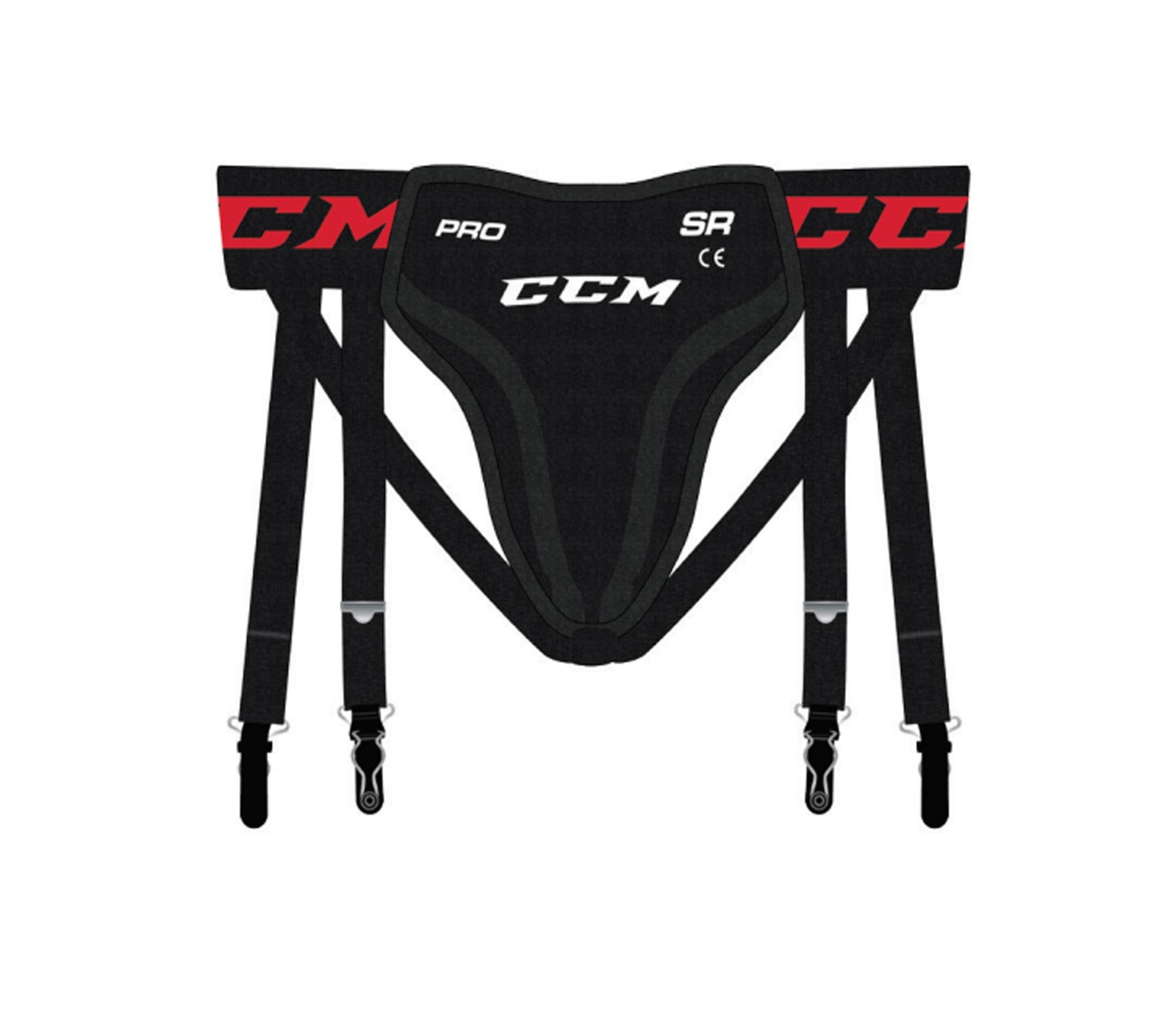 Hard shell with soft liner for maximum protection and comfort in the groin area Wide 2.5" stretch waistband ensures optimal support and a comfortable fit Heavy duty 1" thigh straps with double stitching for durability Robust rubber hooks with adjustable metal fasteners Material: 100% polyester, elastic: 80% polyester / 20% rubber (without trimmings)