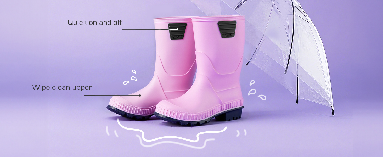 • Wipe Them Clean: These kids’ rain boots are super easy to clean. With a quick wipe, and they'll be ready for more fun!