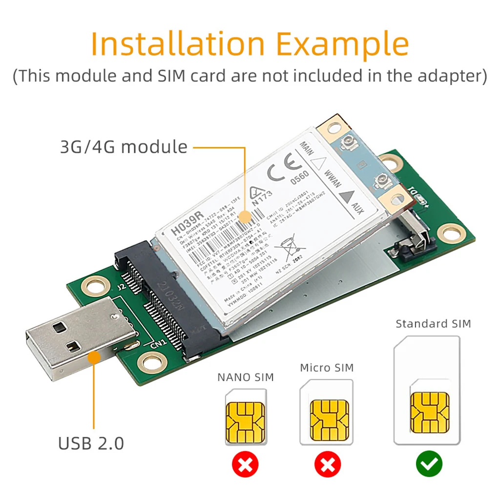 1. Doesn’t support PCI-E bus type minicard such as Wifi module, only supports USB bus interface of Mini-Cards such as GSM, GPRS, HSPA MODEM, GPS, 3G, 4G, LTE and Mini-Card to desktop PC.