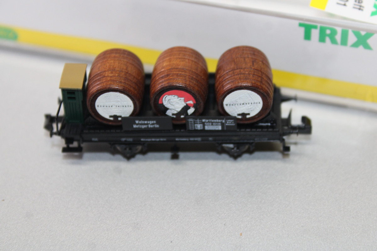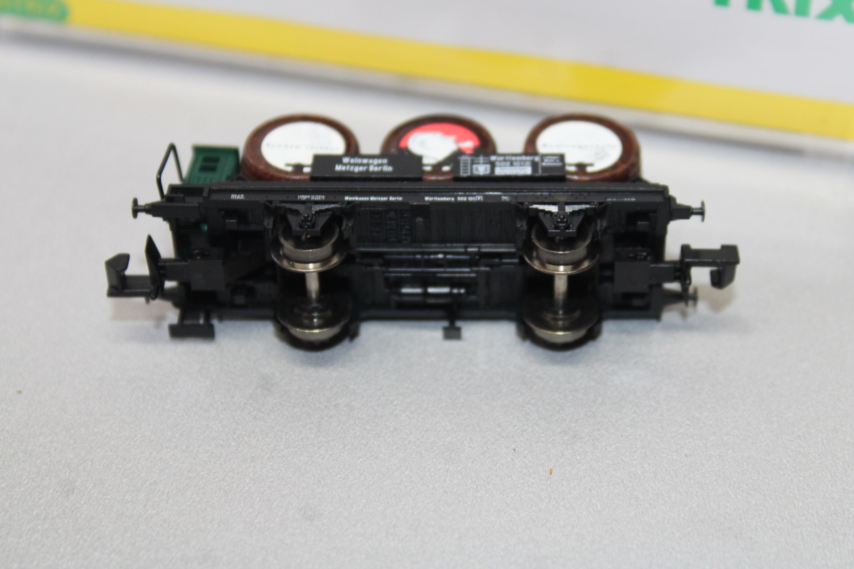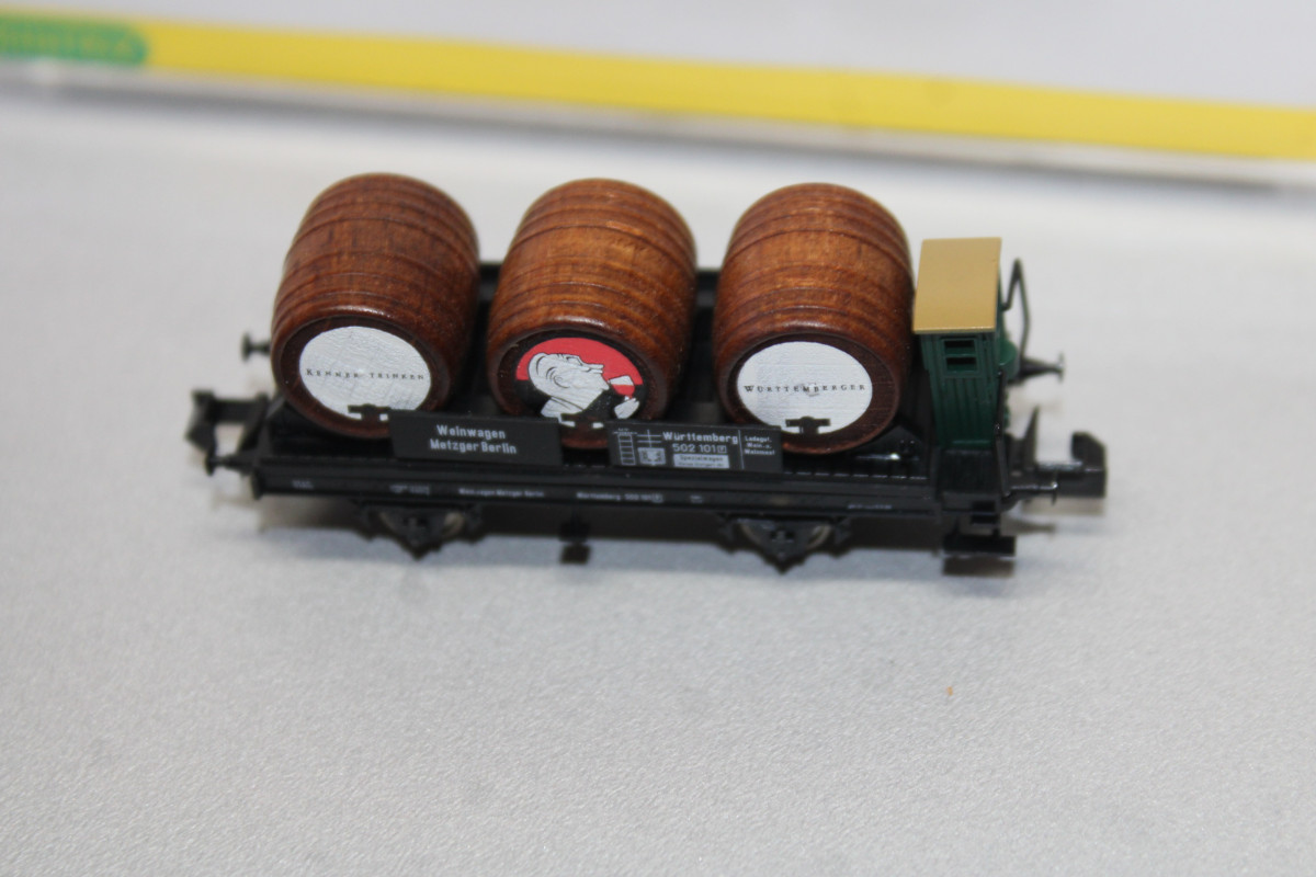 Es ist ein Minitrix 15026 2-Achser Weinfasswagen Württemberg Spur N OVP .