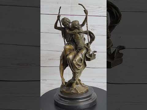 The intricate details of this sculpture narrate a tale of affection and connection. The "lost wax method" was employed to create the exquisite brown patina that envelops the figures, lending them an organic allure that seems to emanate from within. The couple's posture on the swing encapsulates the joy of companionship, and their features are finely etched, encapsulating emotions and subtleties that touch the heart.