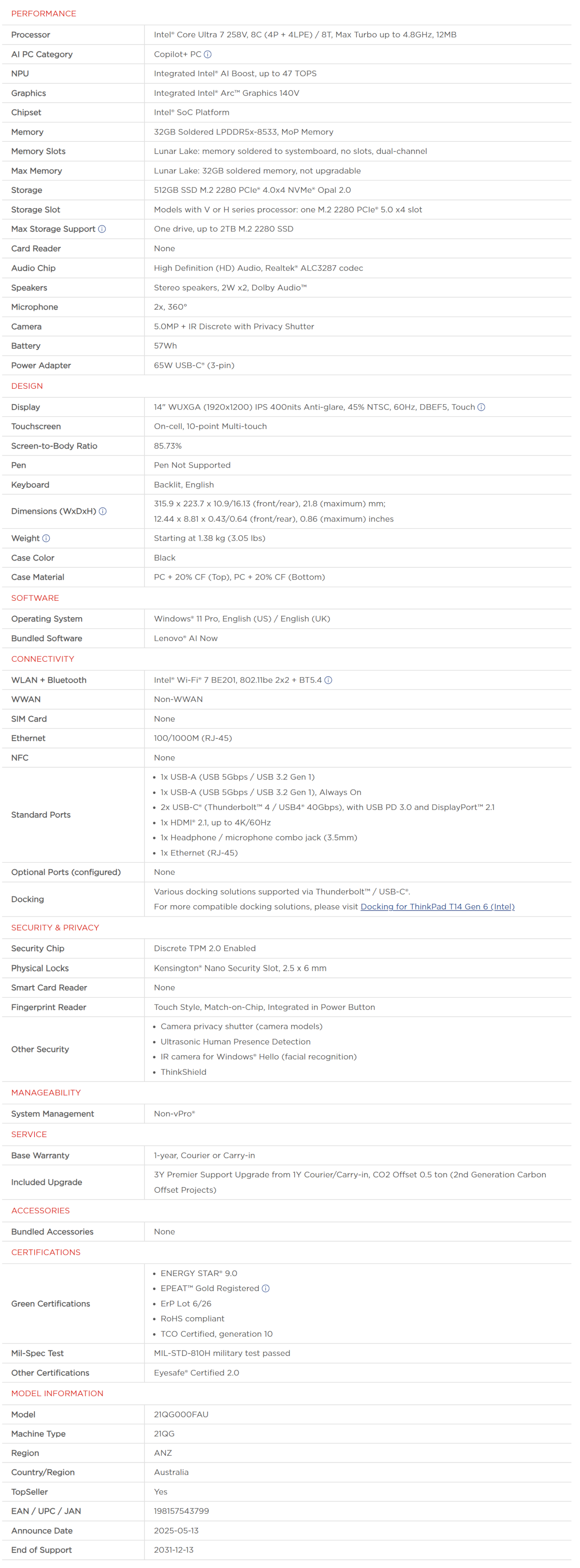 Product Specifications