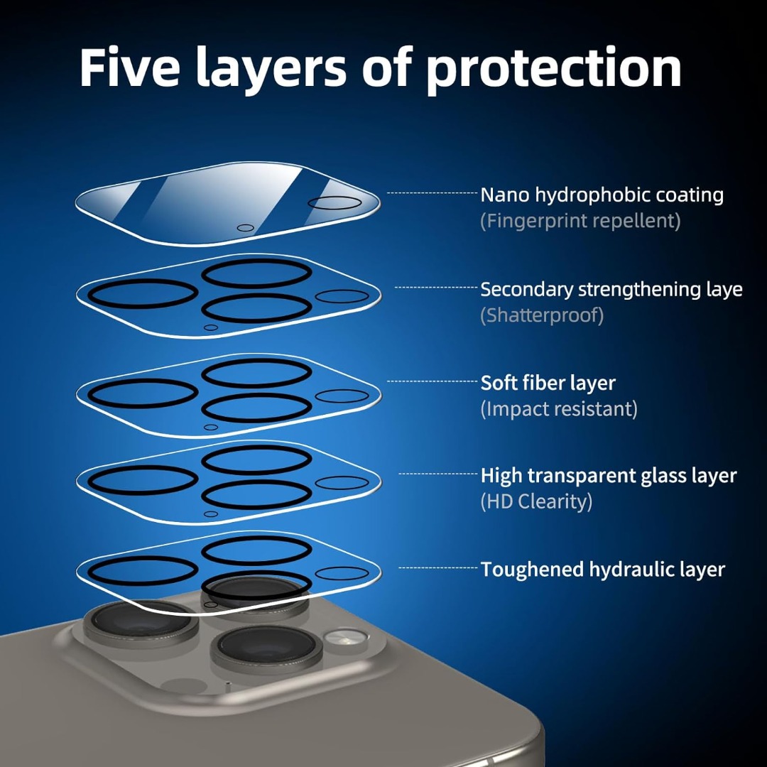 ANTI-RAYURES : Le matériau du verre a une bonne résistance. Les revêtements améliorés résistants aux rayures protègent l'objectif surélevé de l'appareil photo des éraflures et rayures indésirables causées par un couteau, des clés et certains autres objets durs.