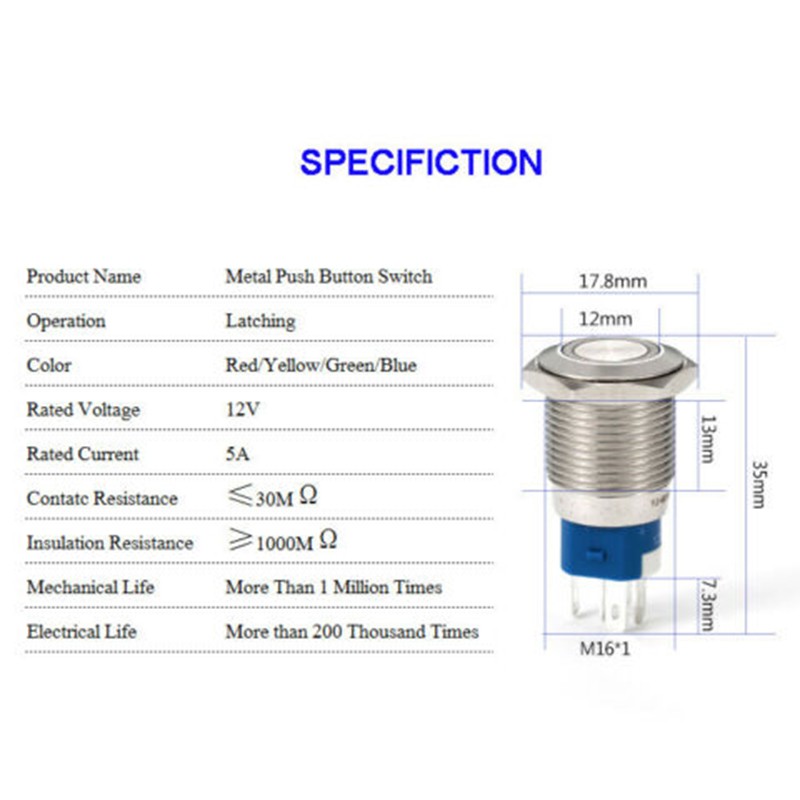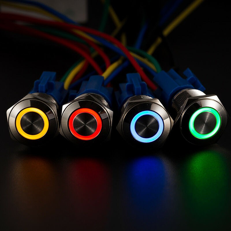 Interrupteur bouton poussoir industriel avec prise pigtail 12V DC 16mm contrôle